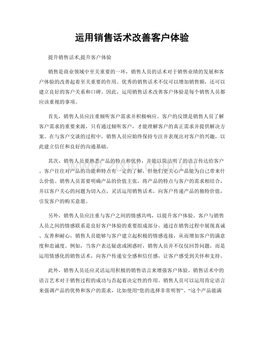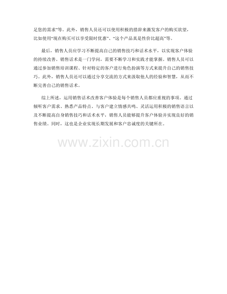 综上所述,运用销售话术改善客户体验是每个销售人员都应重视的事项。通过倾听客户需求、熟悉产品特点、与客户建立情感共鸣、灵活运用积极的销售语言以及不断提高自身销售技巧和话术水平,销售人员能够提升客户体验并实现良好的销售业绩。同时,这也是企业实现长期发展和客户忠诚度的关键所在。