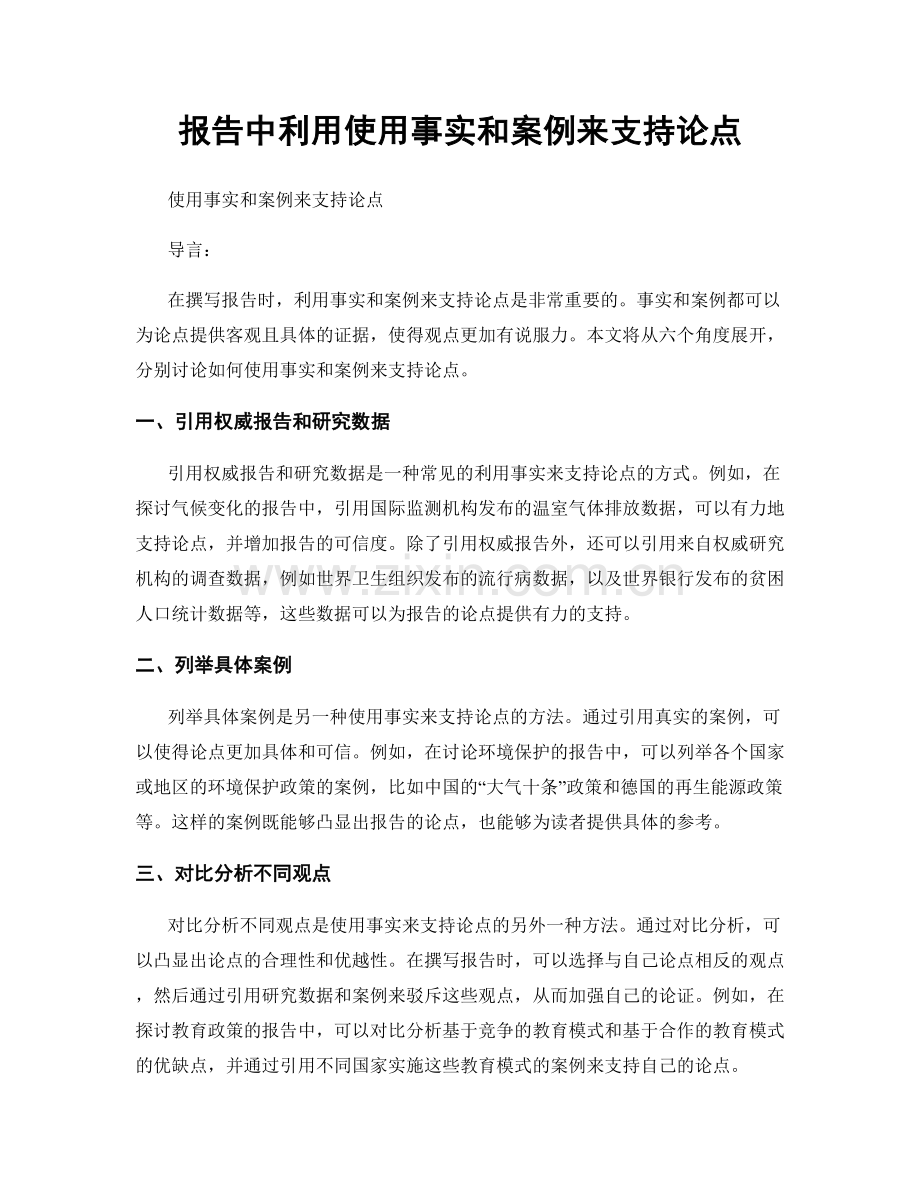 引用权威报告和研究数据是一种常见的利用事实来支持论点的方式。例如,在探讨气候变化的报告中,引用国际监测机构发布的温室气体排放数据,可以有力地支持论点,并增加报告的可信度。除了引用权威报告外,还可以引用来自权威研究机构的调查数据,例如世界卫生组织发布的流行病数据,以及世界银行发布的贫困人口统计数据等,这些数据可以为报告的论点提供有力的支持。