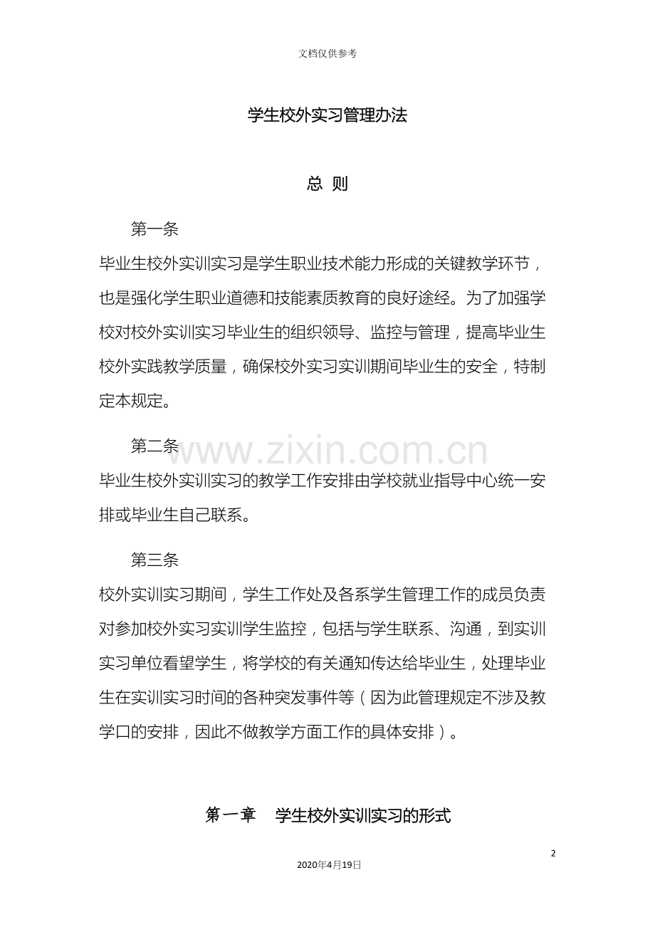第二条 毕业生校外实训实习的教学工作安排由学校就业指导中心统一安排或毕业生自己联系。
