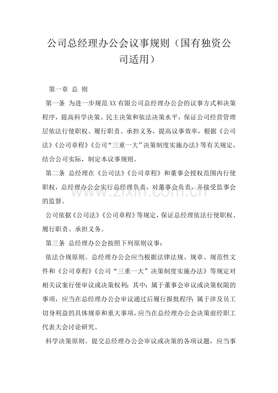 公司总经理办公会议事规则(国有独资公司适用)