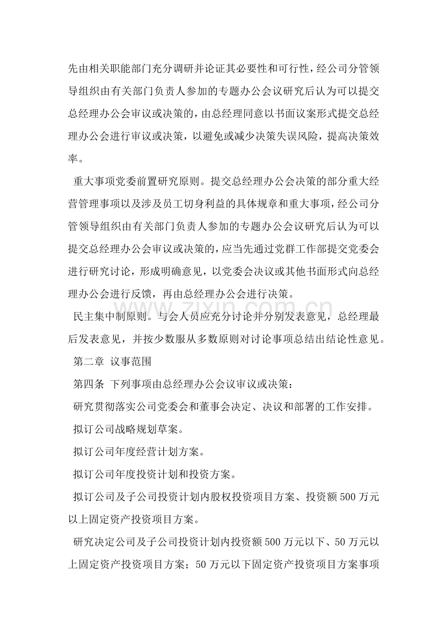第三条 总经理办公会按照下列原则议事: