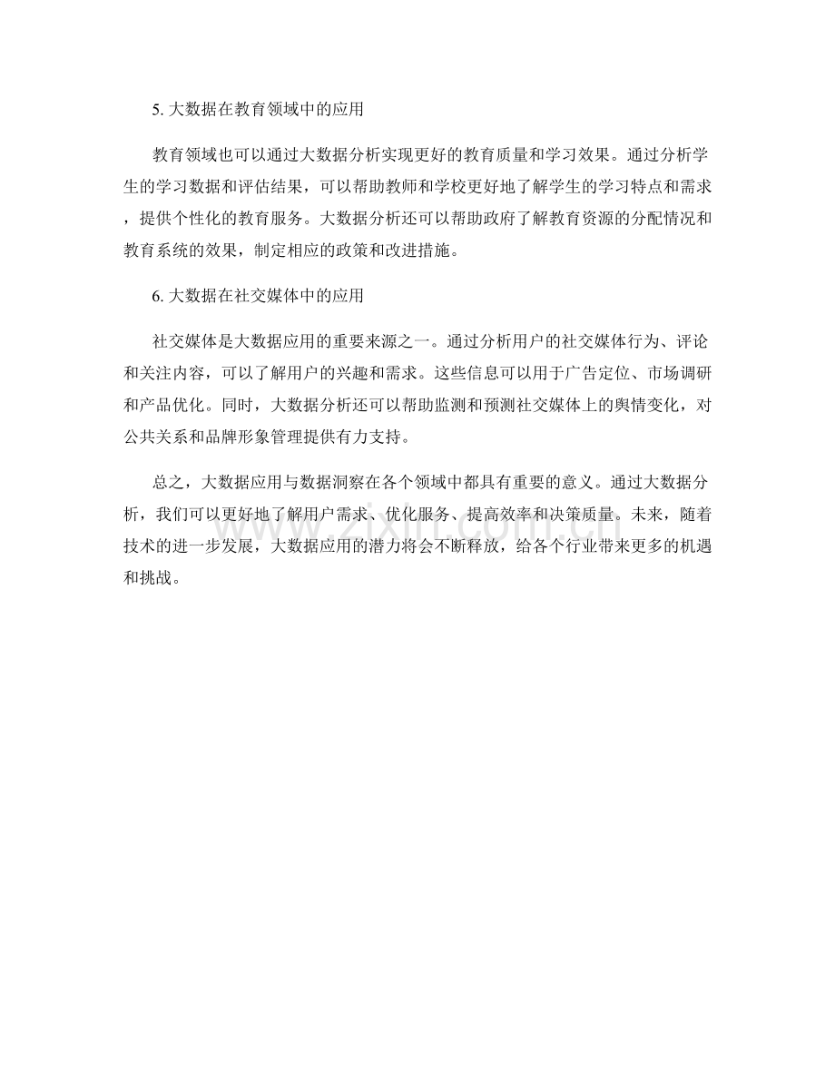 总之,大数据应用与数据洞察在各个领域中都具有重要的意义。通过大数据分析,我们可以更好地了解用户需求、优化服务、提高效率和决策质量。未来,随着技术的进一步发展,大数据应用的潜力将会不断释放,给各个行业带来更多的机遇和挑战。