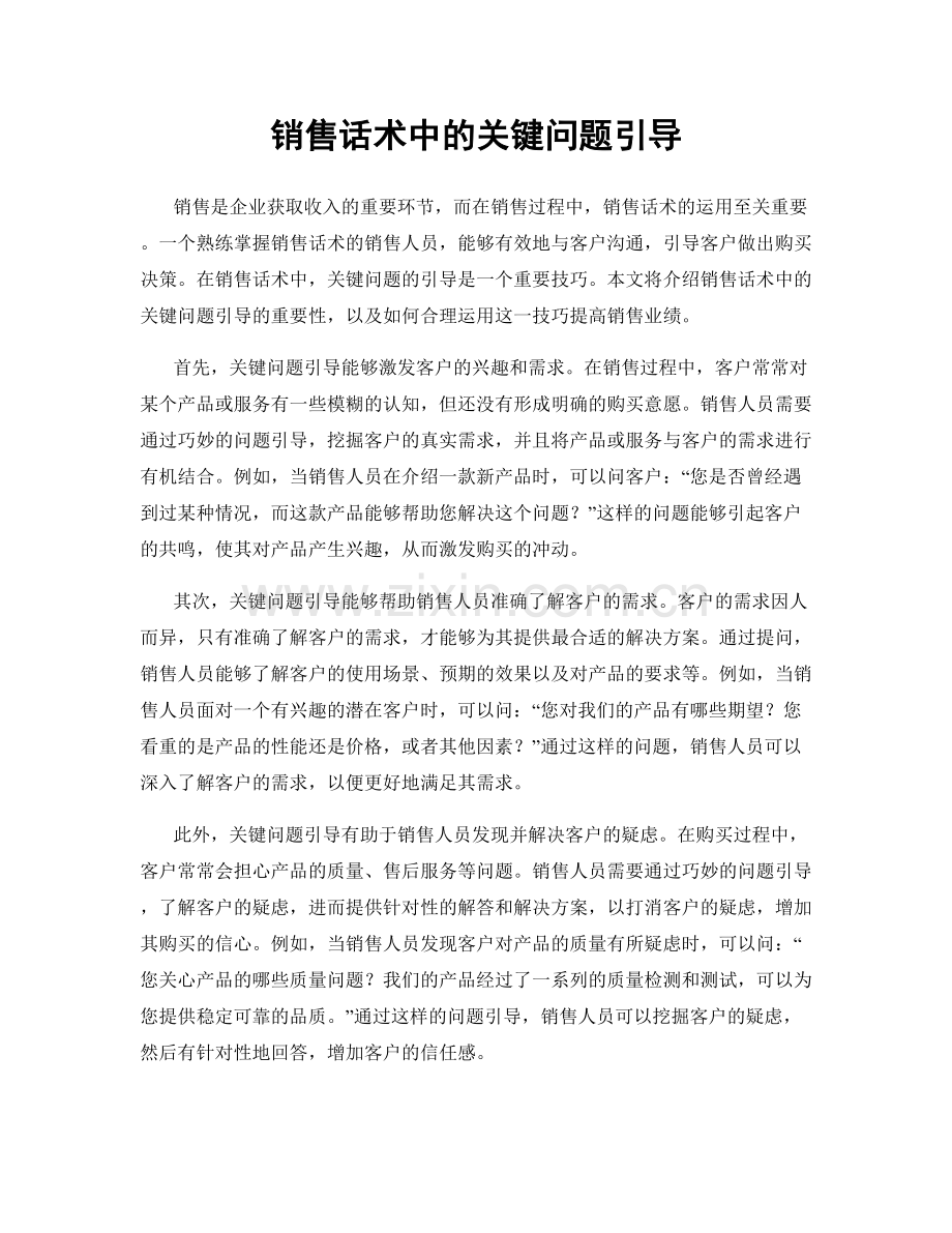 销售话术中的关键问题引导