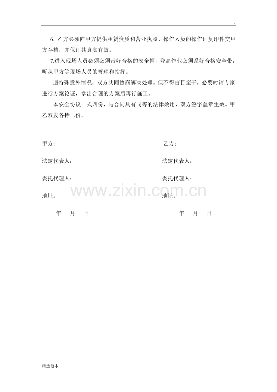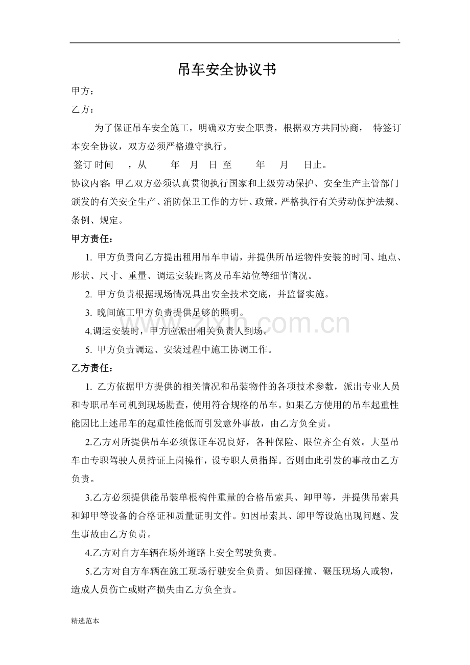 为了保证吊车安全施工,明确双方安全职责,根据双方共同协商, 特签订本安全协议,双方必须严格遵守执行。