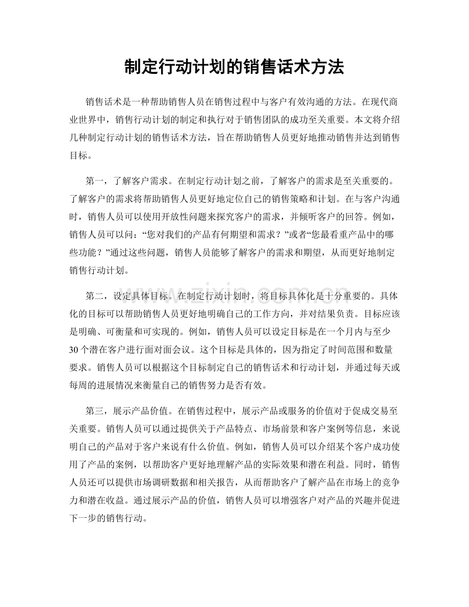 销售话术是一种帮助销售人员在销售过程中与客户有效沟通的方法。在现代商业世界中,销售行动计划的制定和执行对于销售团队的成功至关重要。本文将介绍几种制定行动计划的销售话术方法,旨在帮助销售人员更好地推动销售并达到销售目标。