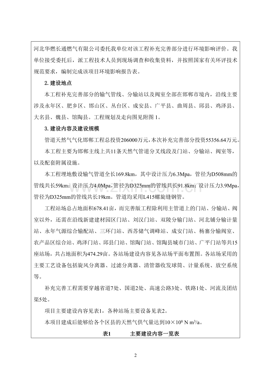 为满足邯郸市各个区县用气,需要向各个区县建设分管道,因此,河北华燃长通燃气有限公司对该工程进行完善细化。根据《中华人民共和国环境影响评价法》和《建设项目环境保护管理条例》等有关环保政策法规要求,该项目需进行环境影响评价。河北华燃长通燃气有限公司委托我单位对该工程补充完善部分进行环境影响评价。我单位接受委托后,派工程技术人员到现场调查和收集资料,并按照国家有关环评技术规范要求,编制完成该项目环境影响报告表。