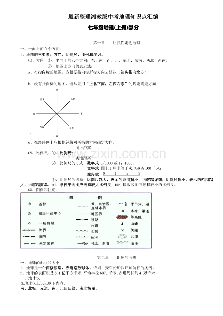 最新整理湘教版中考地理知识点汇编
