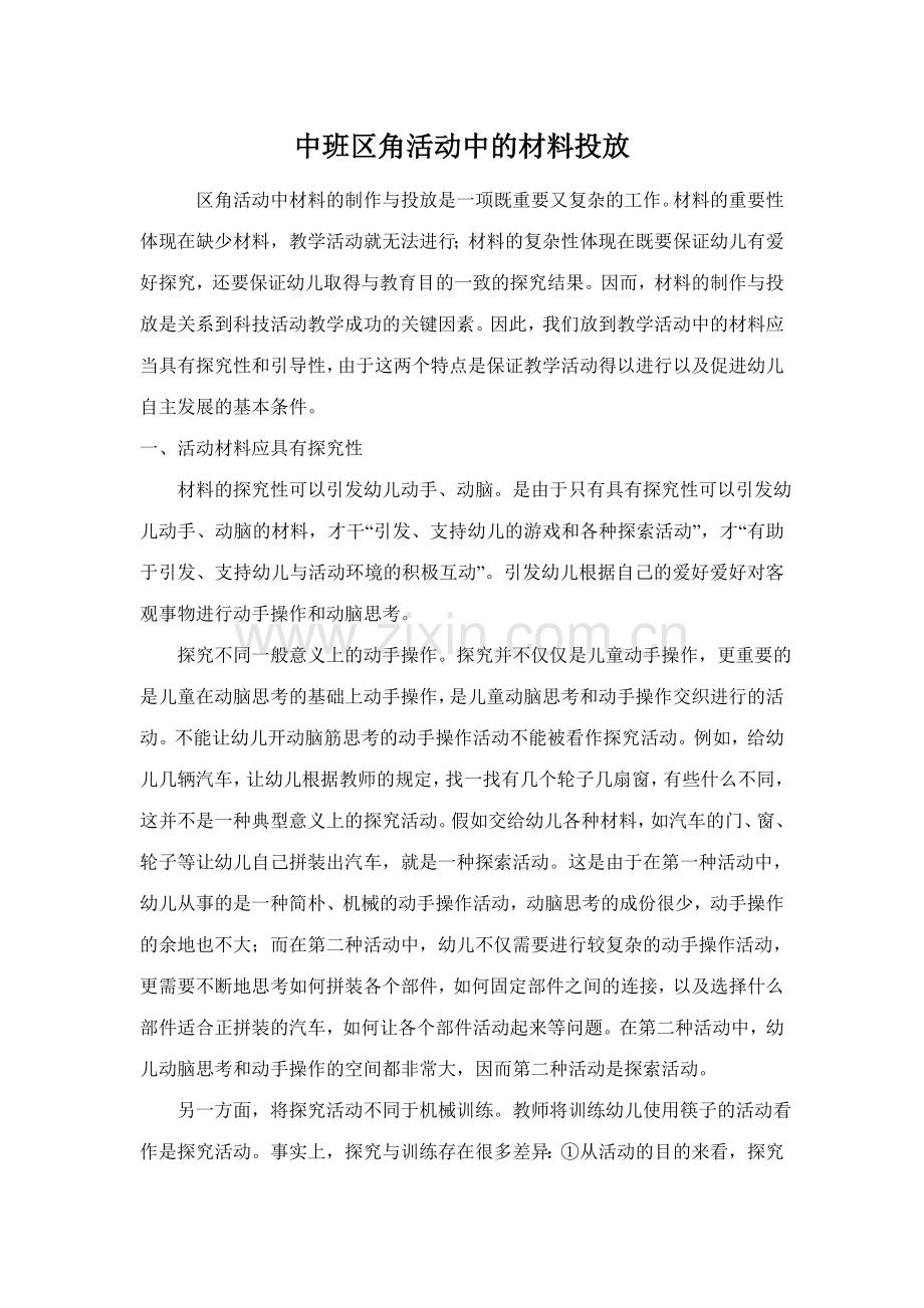 区角活动中材料的制作与投放是一项既重要又复杂的工作。材料的重要性体现在缺少材料,教学活动就无法进行;材料的复杂性体现在既要保证幼儿有爱好探究,还要保证幼儿取得与教育目的一致的探究结果。因而,材料的制作与投放是关系到科技活动教学成功的关键因素。因此,我们放到教学活动中的材料应当具有探究性和引导性,由于这两个特点是保证教学活动得以进行以及促进幼儿自主发展的基本条件。