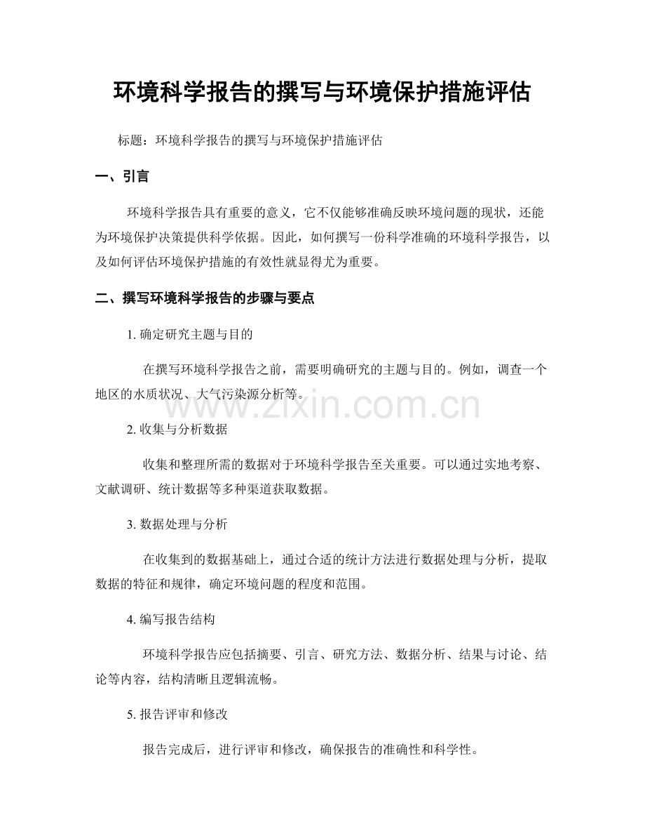 标题:环境科学报告的撰写与环境保护措施评估