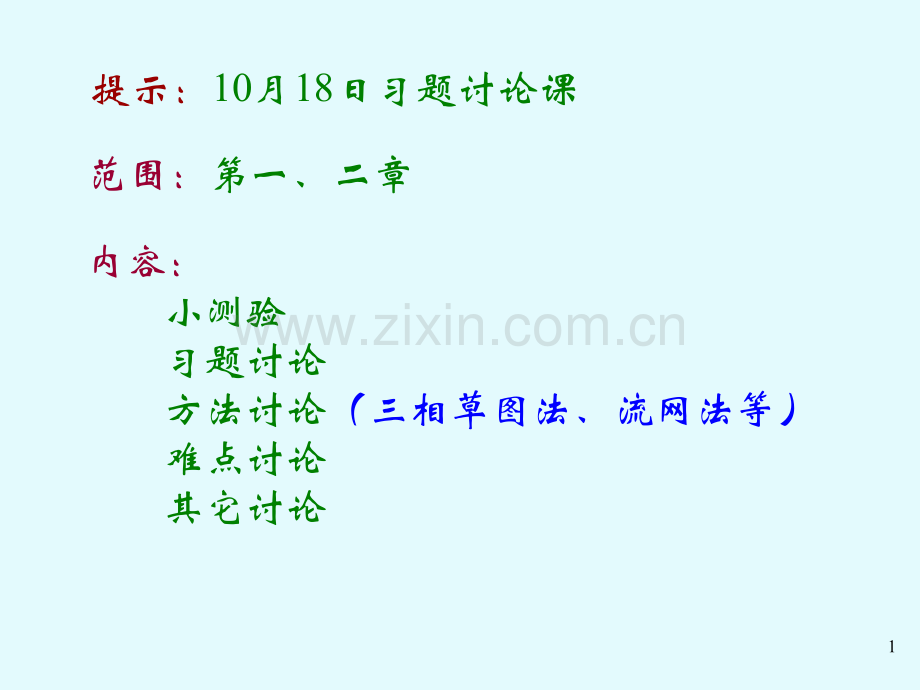 1提示:10月18日习题讨论课范围:第一、二章 内容:小测验 习题讨论 方法讨论(三相草图法、流网法等)难点讨论 其它讨论2本章特点本章特点学习要点学习要点主要难点主要难点有较严格的理论有较严格的理论内容较细内容较细充分利用连续介质力学的基本知识充分利用连续介质力学的基本知识紧密联系土的特点紧密联系土的特点实际应用中进行合理假定实际应用中进行合理假定 有效应力原理有效应力原理有渗流时土中应力计算有渗流时土中应力计算孔压系数孔压系数3 土体中的应力计算图书推荐图书推荐松岡元,松岡元,土力学土力学,罗汀、姚仰平译,罗汀、姚仰平译,中国水利水电出版社,中国水利水电出版社,20012001年年33 土体中的应力计算强度问题强度问题变形问题变形问题地基中的应力状态地基中的应力状态应力应变关系应力应变关系土力学中应力符号的规定土力学中应力符号的规定应力状态应力状态自重应力自重应力附加应力附加应力基底压力计算基底压力计算有效应力原理有效应力原理建筑物修建以后,建筑物建筑物修建以后,建筑物重量等外荷载在地基中引重量等外荷载在地基中引起的应力,所谓的起的应力,所谓的“附加附加”是指在原来自重应力基是指在原来自重应力基础上增加的压力。础上增加的压力。建筑物修建以前,地基建筑物修建以前,地基中由土体本身的有效重中由土体本身的有效重量所产生的应力。量所产生的应力。常规三轴试验常规三轴试验43 土体中的应力计算3.1 3.1 应力状态应力状态3.2 3.2 地基中自重应力的计算地基中自重应力的计算3.3 3.3 地基中附加应力的计算地基中附加应力的计算3.4 3.4 基底压力计算基底压力计算3.5 3.5 有效应力原理有效应力原理3.6 3.6 常规三轴试验常规三轴试验5yzxo一一.土力学中应力符号的规定土力学中应力符号的规定 3 土体中的应力计算3.1 3.1 应力状态应力状态=地基:地基:半无限空间半无限空间6一.土力学中应力符号的规定 3 土体中的应力计算3.1 3.1 应力状态应力状态莫尔圆应力分析莫尔圆应力分析材料力学材料力学+-+-土力学土力学正应力正应力剪应力剪应力拉为正拉为正压为负压为负顺时针为正顺时针为正逆时针为负逆时针为负压为正压为正拉为负拉为负逆时针为正逆时针为正顺时针为负顺时针为负二二.地基中常见的应力状态地基中常见的应力状态 3 土体中的应力计算3.1 3.1 应力状态应力状态yzxo1.1.一般应力状态一般应力状态三维问题三维问题=82.2.轴对称三维问题轴对称三维问题应变条件应力条件独立变量:二.地基中常见的应力状态 3 土体中的应力计算3.1 3.1 应力状态应力状态=0 00 00 00 00 00 00 00 00 00 00 00 09二.地基中常见的应力状态 3 土体中的应力计算3.1 3.1 应力状态应力状态2.2.轴对称三维问题轴对称三维问题一般三维应力状态一般三维应力状态:三轴应力状态:三轴应力状态:忽略中主应忽略中主应力的影响力的影响理论研究和工程实践中广泛应用理论研究和工程实践中广泛应用103.1 3.1 应力状态应力状态yzxo3 土体中的应力计算3.3.平面应变条件平面应变条件二维问题二维问题l沿长度方向有足够长度,沿长度方向有足够长度,L/B 10;l垂直于垂直于y轴切出的任意断面的几轴切出的任意断面的几何形状均相同,其地基内的应力何形状均相同,其地基内的应力状态也相同;状态也相同;l平面应变条件下,土体在平面应变条件下,土体在x,z平平面内可以变形,但在面内可以变形,但在y方向没有方向没有变形。变形。二.地基中常见的应力状态 113.3.平面应变条件平面应变条件二维问题二维问题应变条件应力条件独立变量二.地基中常见的应力状态 3 土体中的应力计算3.1 3.1 应力状态应力状态=0 00 00 00 00 00 00 00 00 0124.4.侧限应力状态侧限应力状态一维问题一维问题水平地基水平地基 半无限空间体;半无限空间体;半无限弹性地基内的自重应力只与半无限弹性地基内的自重应力只与Z Z有关;有关;土质点或土单元不可能有侧向位移土质点或土单元不可能有侧向位移 侧限应变条件;侧限应变条件;任何竖直面都是对称面任何竖直面都是对称面应变条件AB3 土体中的应力计算3.1 3.1 应力状态应力状态二.地基中常见的应力状态 yzxo13应变条件应力条件独立变量4.4.侧限应力状态侧限应力状态一维问题一维问题3 土体中的应力计算3.1 3.1 应力状态应力状态二.地基中常见的应力状态 =0 00 00 00 00 00 00 00 00 00 00 00 00 00 0K K0 0:侧压力系数:侧压力系数理论研究和工程实践中广泛应用理论研究和工程实践中广泛应用14均匀一致各向同性体均匀一致各向同性体(土层性质变化不大时)(土层性质变化不大时)线弹性体线弹性体(应力较小时)(应力较小时)连续介质连续介质(宏观平均)(宏观平均)与与(x,y,z)无无关关与方向无关与方向无关 理论 方法弹性力学解弹性力学解 求解求解“弹性弹性”土体中的应力土体中的应力解析方法解析方法 优点:简单,易于绘成图表等优点:简单,易于绘成图表等3 土体中的应力计算碎散体碎散体非线性非线性弹塑性弹塑性成层土成层土各向异性各向异性p pe e线弹性体线弹性体加载加载卸载卸载3.1 3.1 应力状态应力状态三三.土的应力土的应力-应变关系的假定应变关系的假定 153 土体中的应力计算3.1 3.1 应力状态应力状态3.2 3.2 地基中自重应力的计算地基中自重应力的计算3.3 3.3 