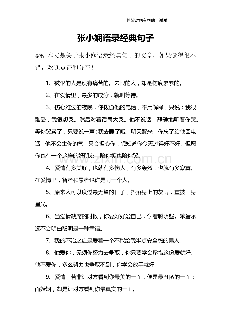 导读:本文是关于张小娴语录经典句子的文章,如果觉得很不错,欢迎点评和分享!