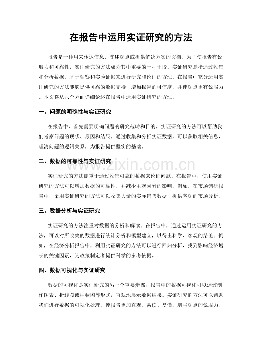 综上所述,实证研究的方法在报告中具有重要的作用。通过明确问题、收集可靠数据、进行数据分析和可视化、验证结果,并将其转化为有价值的决策建议,实证研究的方法可以提高报告的可靠性、说服力和可信度。因此,在报告中充分运用实证研究的方法是非常重要的。