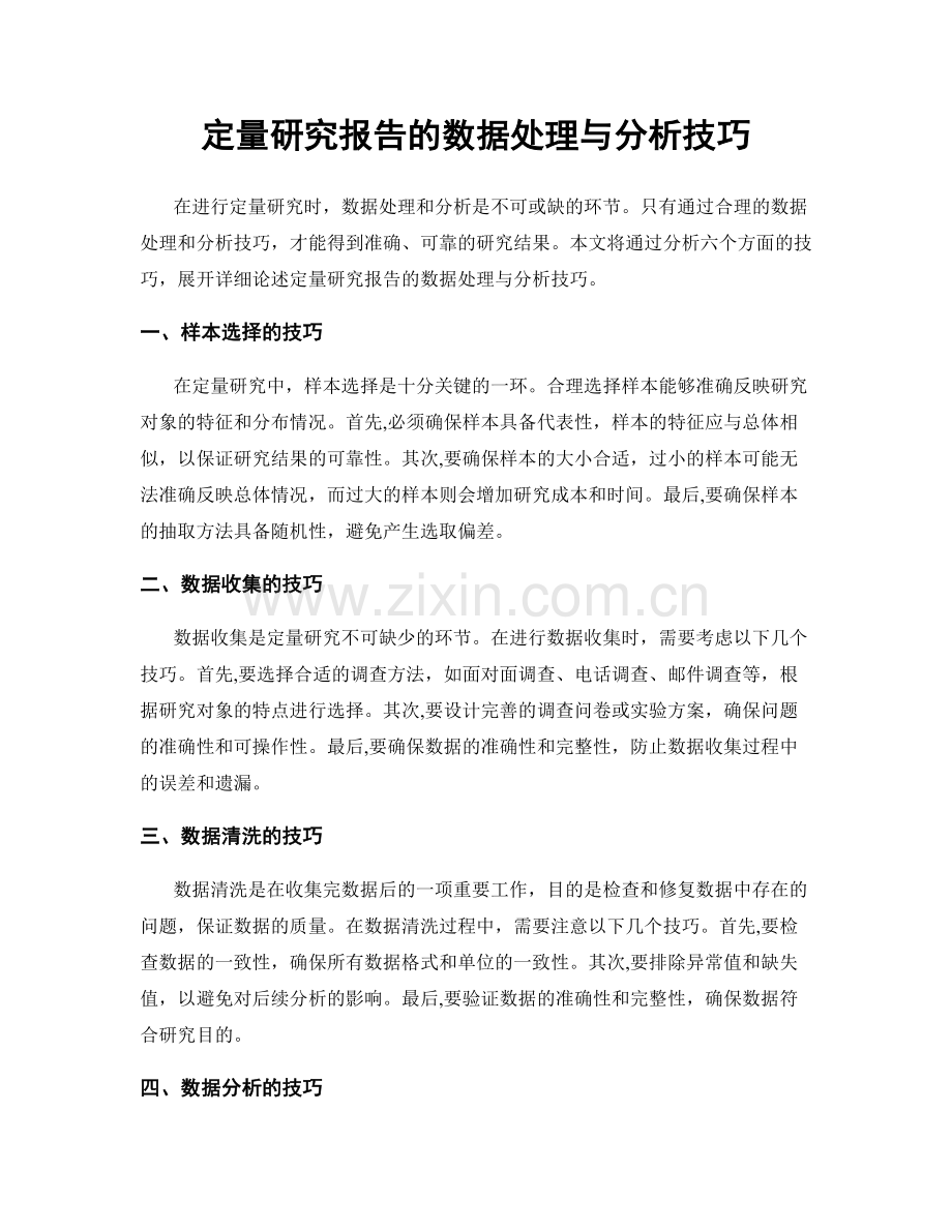 在进行定量研究时,数据处理和分析是不可或缺的环节。只有通过合理的数据处理和分析技巧,才能得到准确、可靠的研究结果。本文将通过分析六个方面的技巧,展开详细论述定量研究报告的数据处理与分析技巧。