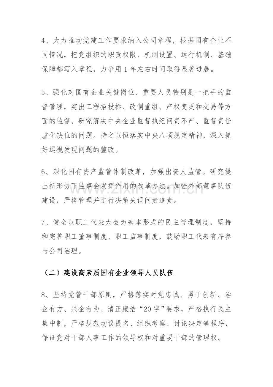 5、强化对国有企业关键岗位、重要人员特别是一把手的监督管理,突出工程招投标、改制重组、产权变更和交易等方面的监督。研究解决中央企业监督执纪问责不严、监督责任虚化缺位的问题。持之以恒落实中央八项规定精神,深入抓好巡视发现问题的整改。
