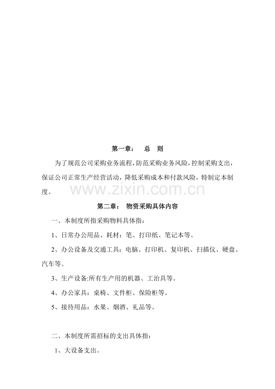 一、本制度所指采购物料具体指:
