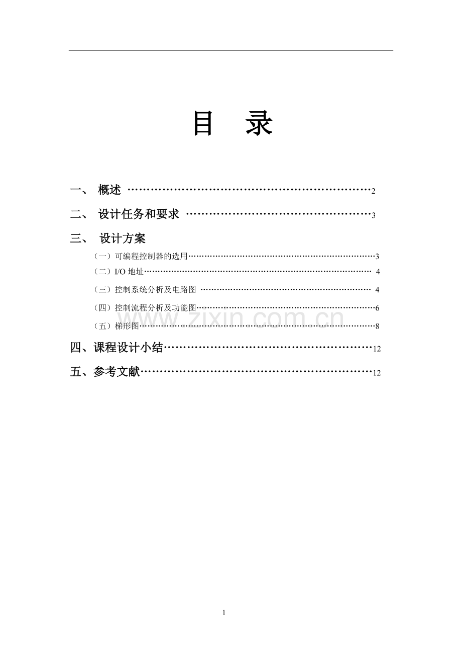 (一)可编程控制器的选用……………………………………………………………3