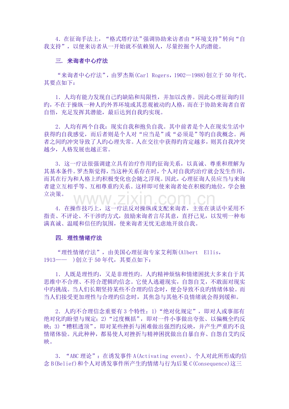 “来询者中心疗法”,由罗杰斯(Carl Rogers,1902—1988)创立于50年代。其要点如下:
