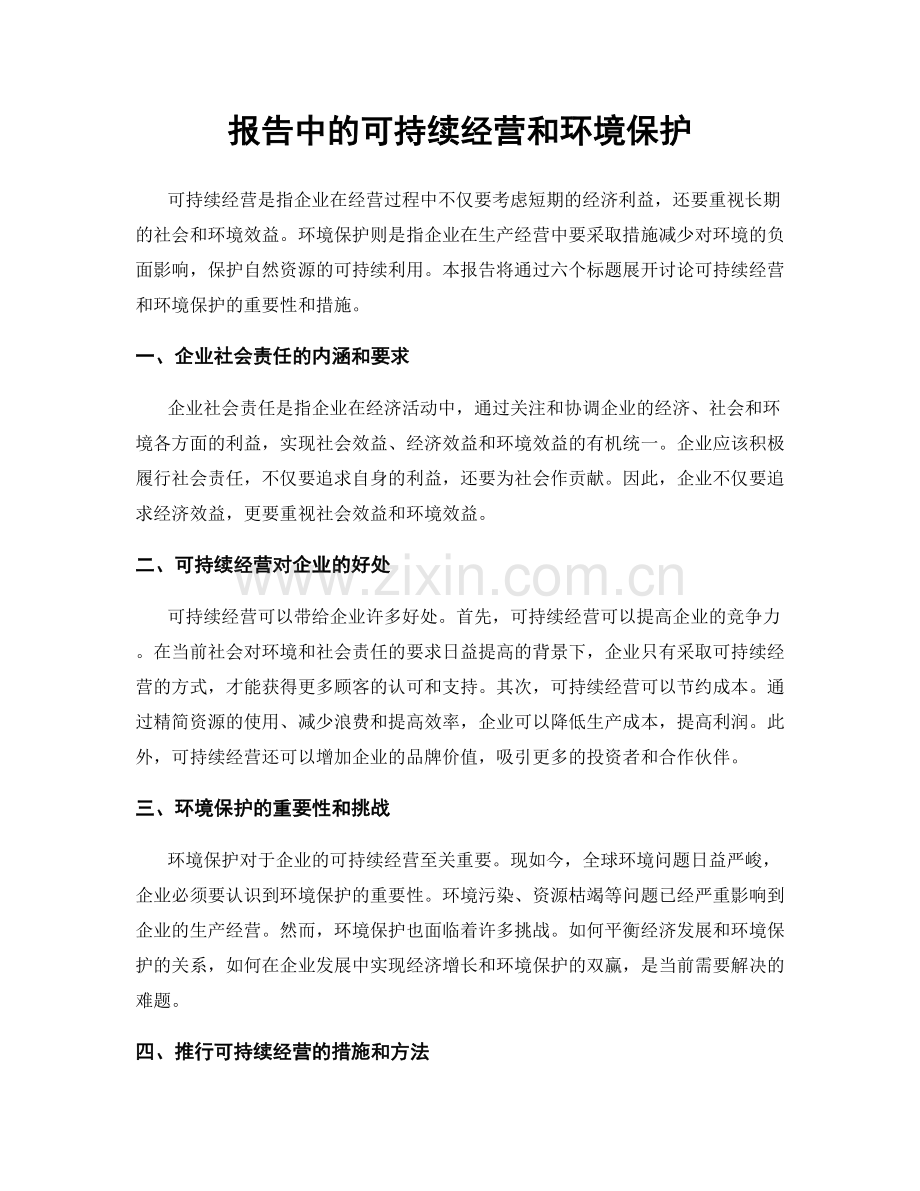 可持续经营是指企业在经营过程中不仅要考虑短期的经济利益,还要重视长期的社会和环境效益。环境保护则是指企业在生产经营中要采取措施减少对环境的负面影响,保护自然资源的可持续利用。本报告将通过六个标题展开讨论可持续经营和环境保护的重要性和措施。