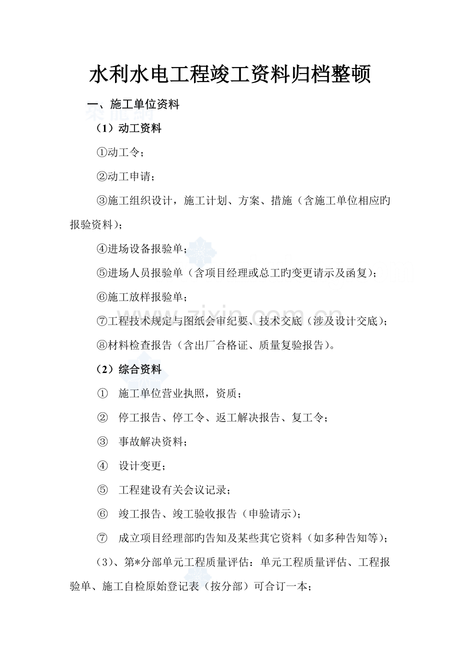 (6)分部工程收签证:分部工程收资料,单本装订;