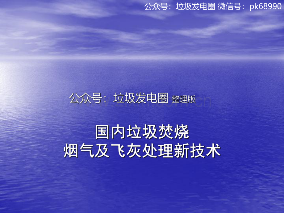 公众号:垃圾发电圈 微信号:pk68990公众号:垃圾发电圈 微信号:pk68990l 国内垃圾焚烧烟气处理现状国内垃圾焚烧烟气处理现状l 垃圾焚烧烟气处理新技术垃圾焚烧烟气处理新技术 专利技术酸性气体净化装置 专利技术洗涤塔l 国内垃圾焚烧厂烟气处理工艺建议国内垃圾焚烧厂烟气处理工艺建议 l 飞灰处理新技术飞灰处理新技术 专利技术螯合剂 专利技术混炼机公众号:垃圾发电圈 微信号:pk68990公众号:垃圾发电圈 微信号:pk68990l 半干法半干法活性炭喷射 布袋除尘器l 干法干法活性炭喷射 布袋除尘器l 循环流化循环流化活性炭喷射 布袋除尘器公众号:垃圾发电圈 微信号:pk68990半干法半干法处理工艺流程示意图处理工艺流程示意图公众号:垃圾发电圈 微信号:pk68990应用实例:应用实例:上海御桥、上海江桥、天津双港、广州李坑、成都上海御桥、上海江桥、天津双港、广州李坑、成都洛带、苏州光大、北京高安屯、江苏昆山洛带、苏州光大、北京高安屯、江苏昆山 半干法工艺特点:半干法工艺特点:l 污染物去除效率高污染物去除效率高l 石灰耗量低石灰耗量低l 废水零排放废水零排放l 反应残余物干燥反应残余物干燥l 对石灰浆品质要求比较高对石灰浆品质要求比较高 旋转喷雾器工作时,喷嘴盘以高速转动将吸收剂溶液雾化成细滴,与烟气中的酸气发生反应,起到除酸作用。旋转喷雾器半干法半干法的工艺特点及应用实例的工艺特点及应用实例公众号:垃圾发电圈 微信号:pk68990干法干法处理工艺流程示意图处理工艺流程示意图公众号:垃圾发电圈 微信号:pk68990工艺特点:工艺特点:l 石灰耗量高石灰耗量高l 不需要排水处理设备不需要排水处理设备l 工艺流程简单工艺流程简单,设备投资低设备投资低l 除尘和去除有害气体效果较高除尘和去除有害气体效果较高干法干法的工艺特点及应用实例的工艺特点及应用实例应用实例:应用实例:成都洛带垃圾焚烧厂、太仓垃圾焚烧厂成都洛带垃圾焚烧厂、太仓垃圾焚烧厂公众号:垃圾发电圈 微信号:pk68990循环流化处理工艺流程示意图循环流化处理工艺流程示意图公众号:垃圾发电圈 微信号:pk68990应用实例:应用实例:滨江生活垃圾焚烧厂、许昌生活垃圾焚烧厂、金滨江生活垃圾焚烧厂、许昌生活垃圾焚烧厂、金华垃圾焚烧发电厂、富阳生活垃圾焚烧厂华垃圾焚烧发电厂、富阳生活垃圾焚烧厂工艺特点:工艺特点:l 无污水排放;无污水排放;l 占地面积小;占地面积小;l 系统结构简单,造价低,便于运转和维护;系统结构简单,造价低,便于运转和维护;l 反应效率略低反应效率略低.循环流化工艺特点及应用实例循环流化工艺特点及应用实例公众号:垃圾发电圈 微信号:pk68990指标指标单位单位烟气烟气排放标准范围排放标准范围运行运行实测值实测值烟尘mg/Nm33080557HClmg/Nm33075438SO2mg/Nm3100260367NO2mg/Nm320040055388COmg/Nm3501504264Hgmg/Nm30.050.20.05Cdmg/Nm30.050.10.05Pbmg/Nm30.81.60.5二恶英ng/Nm30.1或1.00.0120.168国内部分垃圾焚烧厂烟气国内部分垃圾焚烧厂烟气主要污染物排放值主要污染物排放值公众号:垃圾发电圈 微信号:pk68990注:1)本表规定的各项标准限值,均以标准状态下含11%O2的干烟气为参考值换算。2)烟气最高黑度时间,在任何1h内累计不得超过5min。3)GB18485-2001中HCl、SOX、NOX、CO为小时均值,其余污染物均为测定均值。4)欧盟1992标准和EU2000/76/EEC中重金属、二恶英类为测定均值。公众号:垃圾发电圈 微信号:pk68990国内垃圾焚烧厂烟气处理国内垃圾焚烧厂烟气处理现状总结现状总结l 国内目前的垃圾焚烧厂均可以达到GB18485-2001或欧盟1992标准,但无法达到欧盟2000标准。l 随着社会各界对环保意识的加强,将直接推动烟气排放标准更加严格。l 目前国内已有部分筹建的垃圾焚烧厂的烟气排放拟采用欧盟2000标准。l 因此,必须寻找新的烟气处理工艺。公众号:垃圾发电圈 微信号:pk68990公众号:垃圾发电圈 微信号:pk68990 SNCR+半干法+干法+活性炭喷射+袋式除尘器公众号:垃圾发电圈 微信号:pk68990半干法半干法+干法处理工艺流程干法处理工艺流程公众号:垃圾发电圈 微信号:pk68990l 一种酸性气体净化装置,由半干式脱酸装置和干法脱酸装置连接构成。喷嘴从半干式反应塔的顶部喷入冷却水和NaOH溶液。在后续的烟气管道中喷入消石灰粉末与烟气中残余的酸性气体进一步发生中和反应。l 本专利将半干法除酸装置与干法除酸装置相结合,使二者配合运行,提高了酸性气体脱除效果,烟气排放可以达到欧盟2000标准。公众号:垃圾发电圈 微信号:pk68990消石灰喷射消石灰喷射半干法半干法+干法处理工艺流程示意图干法处理工艺流程示意图应用实例:青岛应用实例:青岛小涧西生活小涧西生活垃圾焚烧厂(在建)。垃圾焚烧厂(在建)。公众号:垃圾发电圈 微信号:pk68990 SNCR+干法+活性炭喷射+袋式除尘器+湿法公众号:垃圾发电圈 微信号:pk68990公众号:垃圾发电圈 微信号:pk68990公众号:垃圾发电圈 微信号:pk68990粉末活性炭粉末活性炭飞灰飞灰烟囱烟囱废水废水水水NaOH溶溶液液干法干法+湿法工艺流程图湿法工艺流程图公众号:垃圾发电圈 微信号:pk68990应用实例:此专利技术拟在应用实例:此专利技术拟在上海江桥上海江桥焚烧厂焚烧厂扩建工程扩建工程中应用中应用 一种洗涤塔,由一个塔身构成,塔身中设置有内腔。塔身内腔中设置有一个冷却部和一个吸收减湿部。冷却部对烟