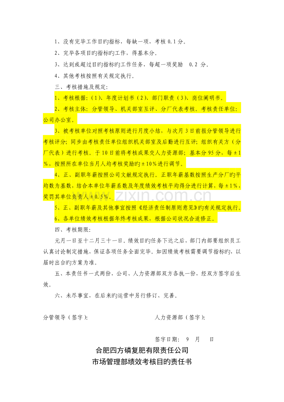 五、本责任书一式两份,公司、市场管理部双方各执一份,经双方签字后生效。