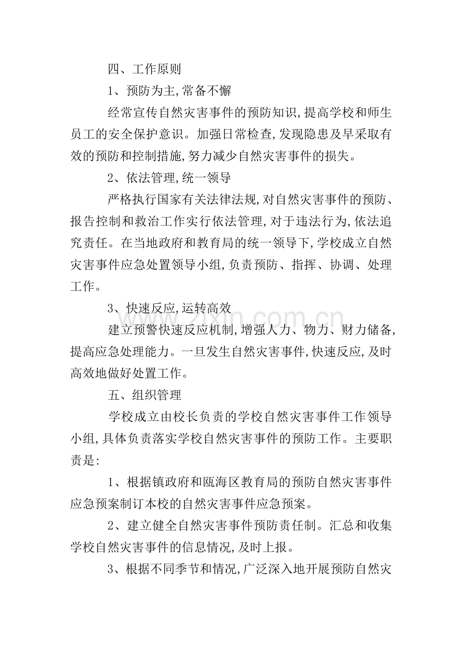 1、根据镇政府和瓯海区教育局的预防自然灾害事件应急预案制订本校的自然灾害事件应急预案。