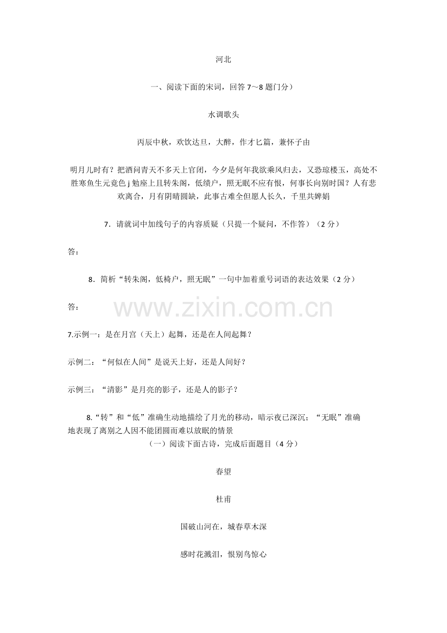7.请就词中加线句子的内容质疑(只提一个疑问,不作答)(2分)
