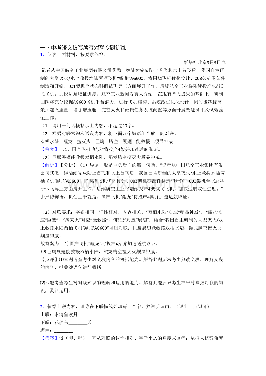 【解析】【分析】(1)仔细分析上联,上联由“迎祖国”“七十华诞”两个个部分七字组成,其中“迎祖国”属于动宾短语,“七十华诞”属于偏正短语,因此所拟写的下联也要有这些特点,除了形式符合要求之外,内容也必须符合“长城”这一专题。本题没有统一答案,只要形式和内容符合要求即可。