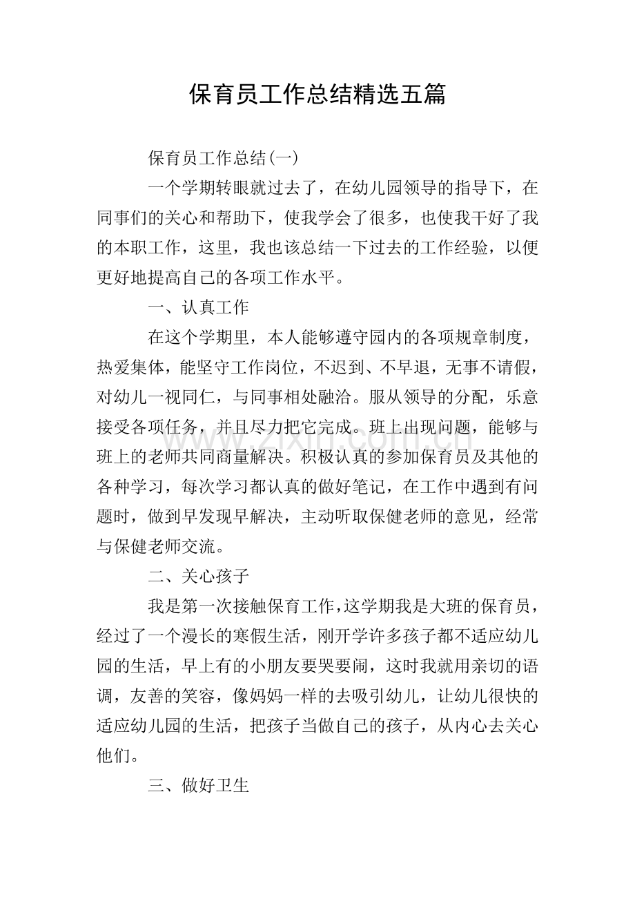 保育员工作总结精选五篇