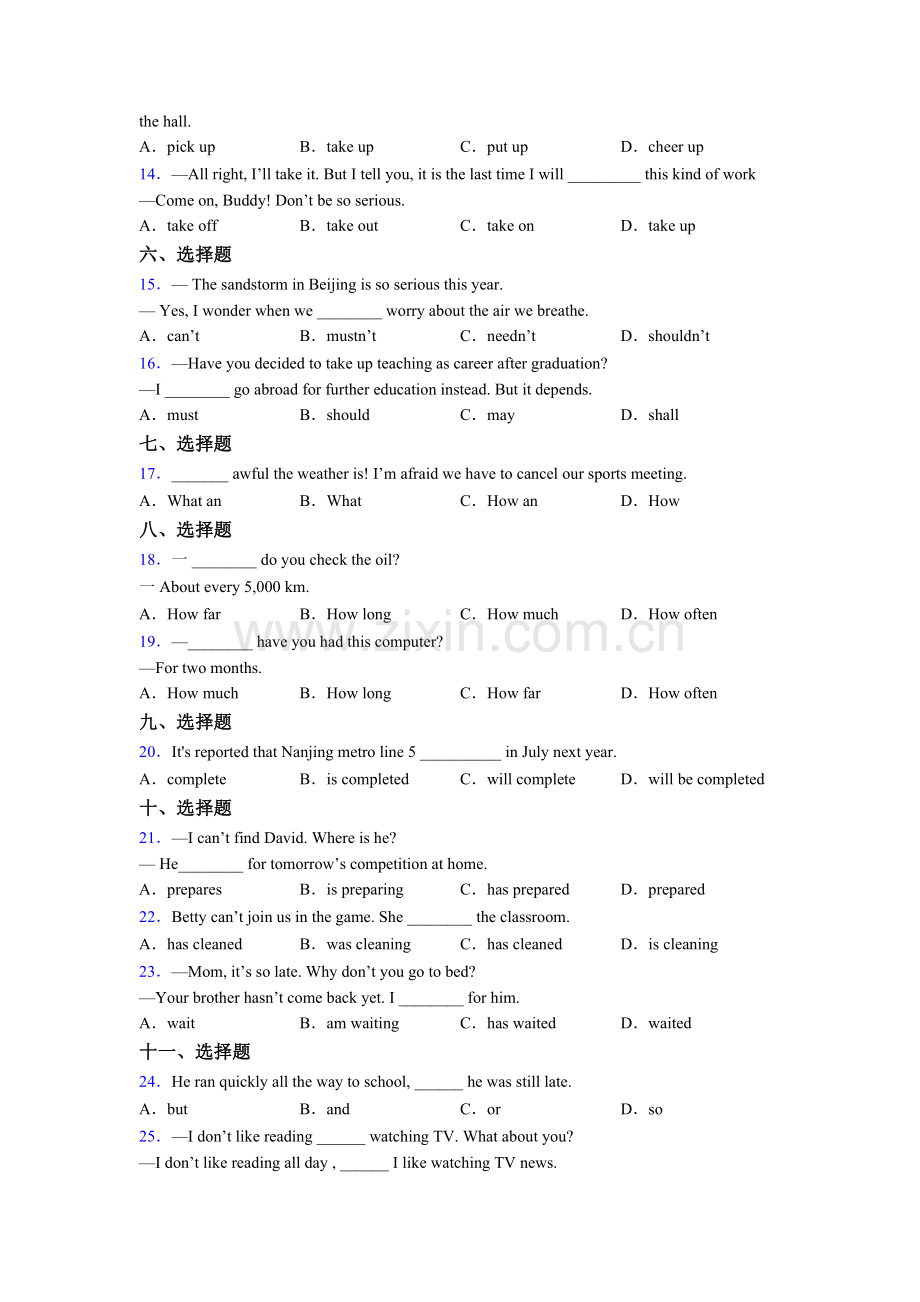 考查情景交际和谚语。A“山中无老虎,猴子称霸王”;B“凡人皆有得意日”;C“众人拾柴火焰高”;D“别把鸡蛋全部放在一个篮子里根据It’s not difficult for five workers to push the broken van away.可知,此句想表达人多少与成功与否的关系。故选C。