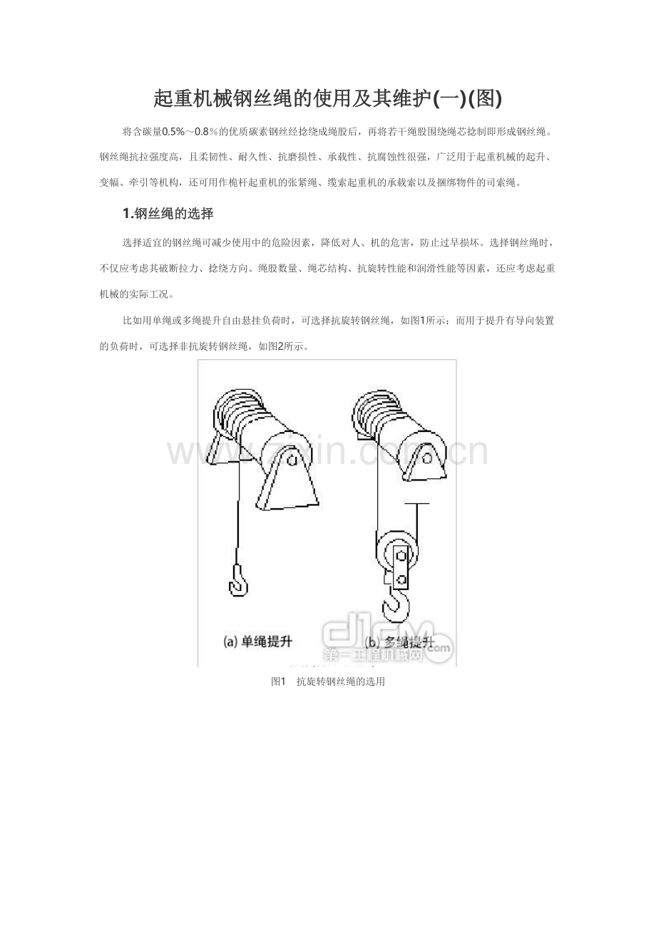 比如用单绳或多绳提升自由悬挂负荷时,可选择抗旋转钢丝绳,如图1所示;而用于提升有导向装置的负荷时,可选择非抗旋转钢丝绳,如图2所示。