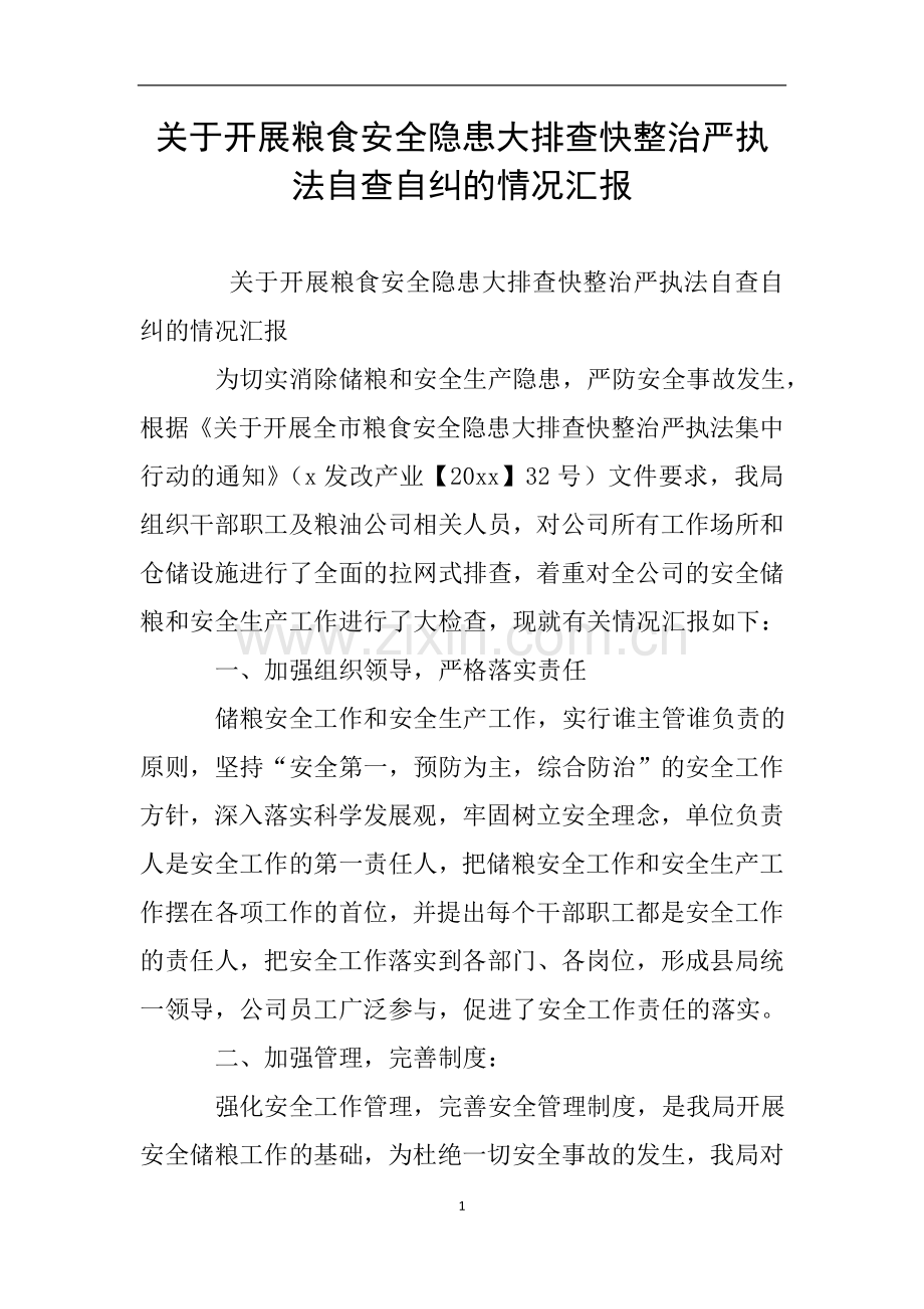 关于开展粮食安全隐患大排查快整治严执法自查自纠的情况汇报