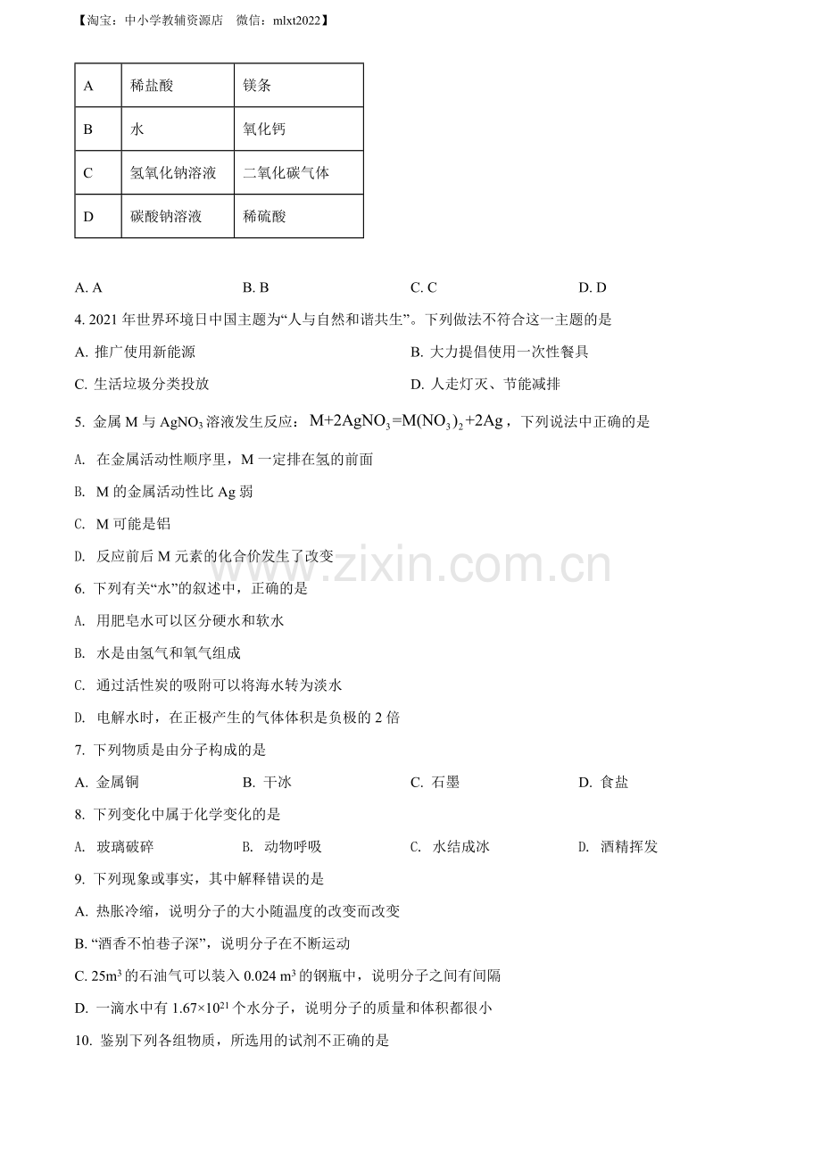 题目2022年江苏省南通市中考化学真题(原卷版).docx_第2页