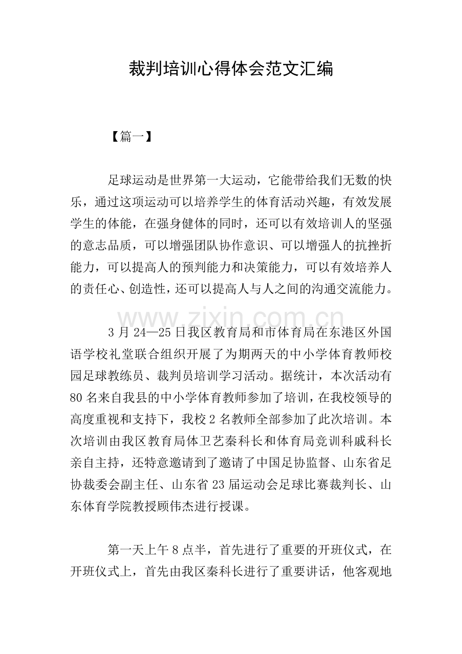 总之,本次培训活动是我县认真贯彻《中国足球改革总体方案》和全国青少年校园足球工作电视电话会议精神,重视足球工作的有力体现。本次培训我收获颇多,让我重新体验到了足球的魅力。本次培训,我通过裁判法学习和上场实践活动,加上和各位足球裁判的互相交流,对足球运动有了更进一步的了解,对竞赛规则有了更清晰的认识,但由于时间关系,感觉对裁判工作只是有了大致了解,还需要进一步学习与提高。在以后的工作中我会认真教学,不断总结经验,为我校足球运动的发展贡献自己的力量,力争在各级比赛中获得理想成绩。