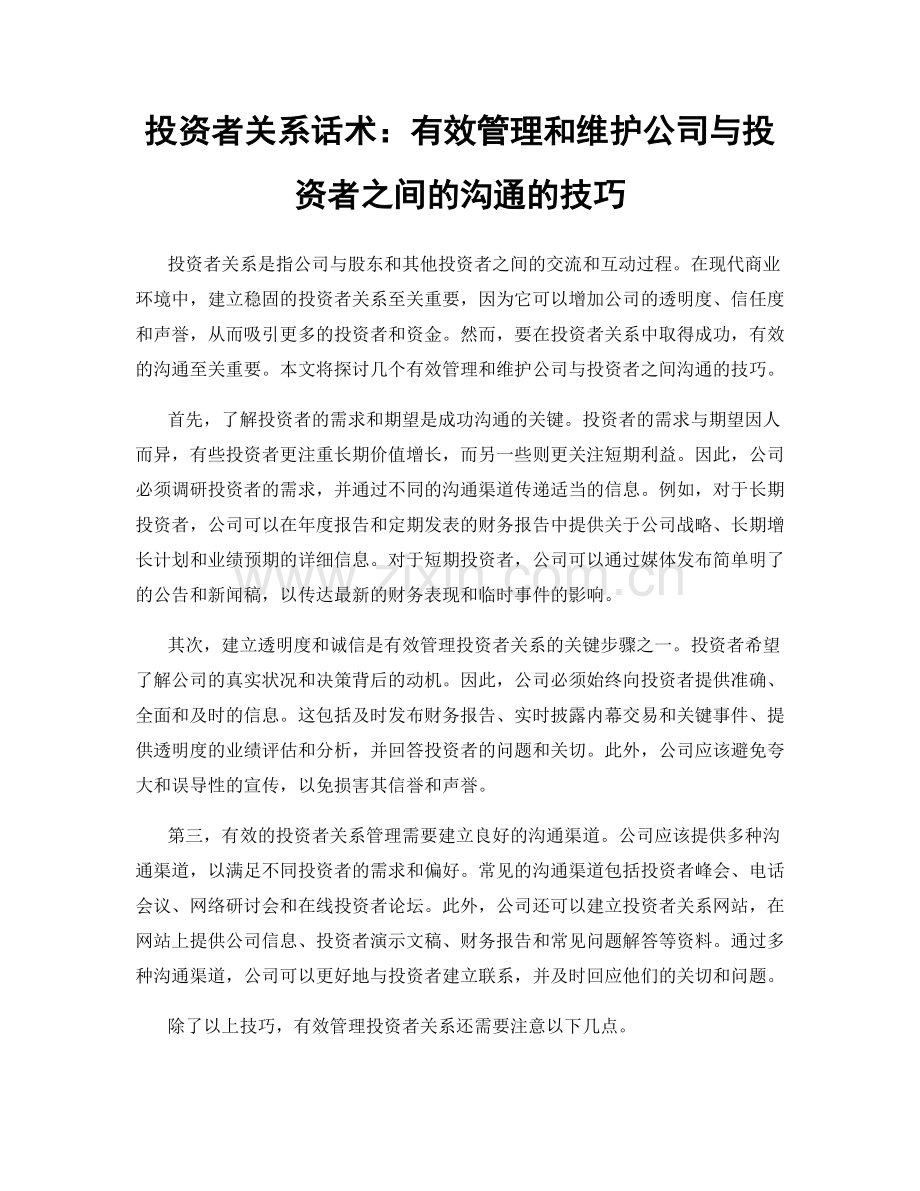 投资者关系话术:有效管理和维护公司与投资者之间的沟通的技巧