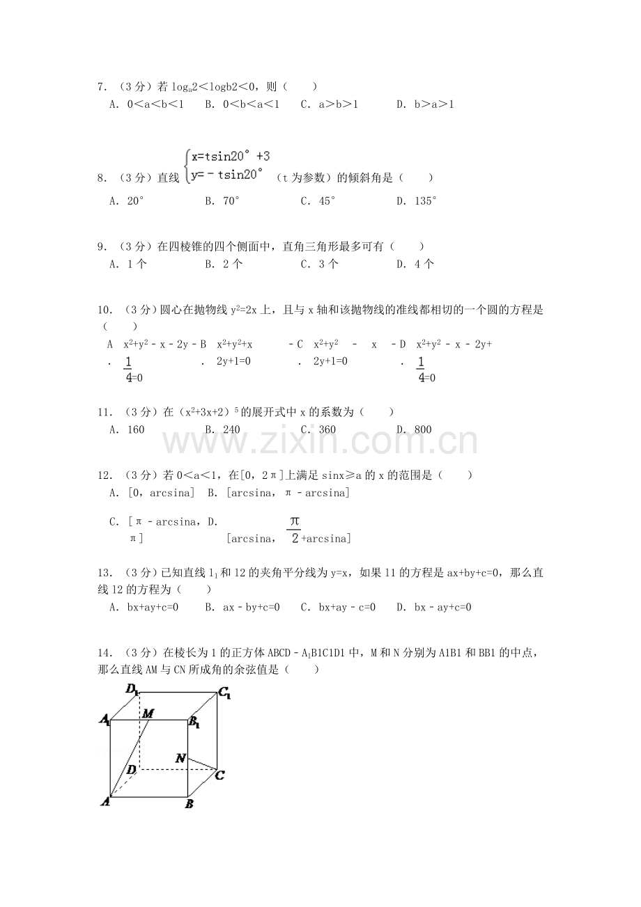 14.(3分)在棱长为1的正方体ABCD﹣A1B1C1D1中,M和N分别为A1B1和BB1的中点,那么直线AM与CN所成角的余弦值是( )