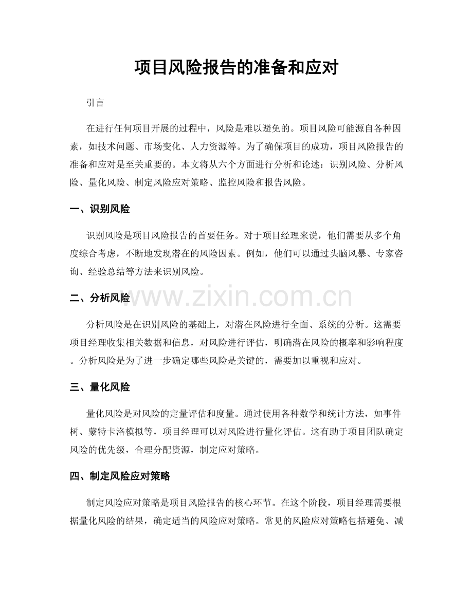 项目风险报告的准备和应对