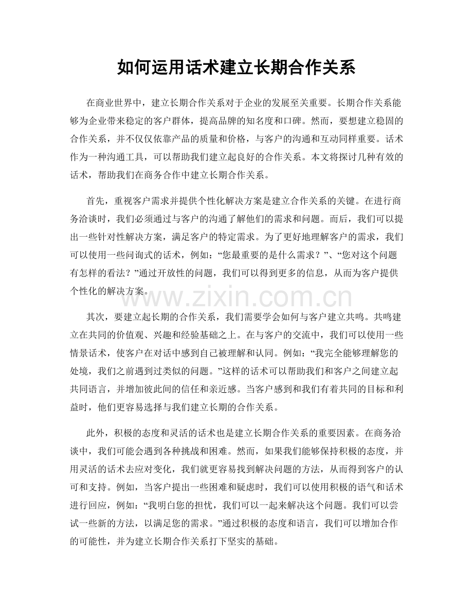 如何运用话术建立长期合作关系