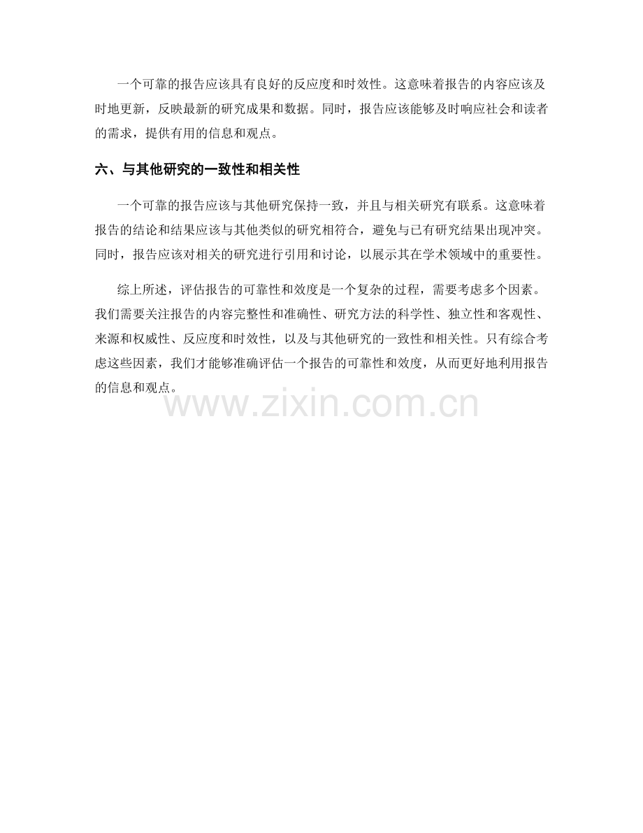 一个可靠的报告应该与其他研究保持一致,并且与相关研究有联系。这意味着报告的结论和结果应该与其他类似的研究相符合,避免与已有研究结果出现冲突。同时,报告应该对相关的研究进行引用和讨论,以展示其在学术领域中的重要性。