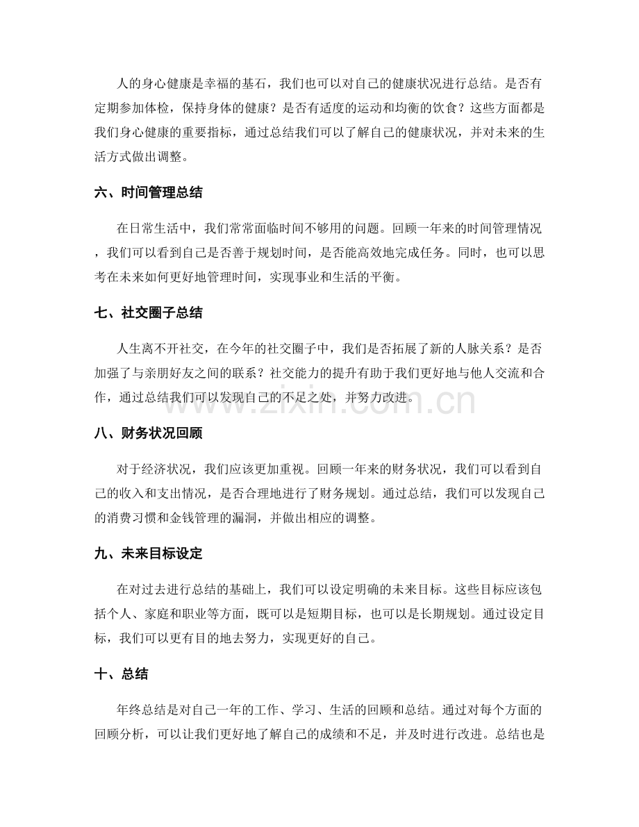 年终总结是对自己一年的工作、学习、生活的回顾和总结。通过对每个方面的回顾分析,可以让我们更好地了解自己的成绩和不足,并及时进行改进。总结也是为了未来的发展和成长奠定基础,通过明确的目标和计划,让我们更加积极地面对新的挑战,迎接新的一年。