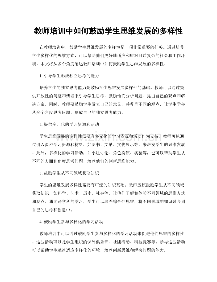 教师培训中如何鼓励学生思维发展的多样性