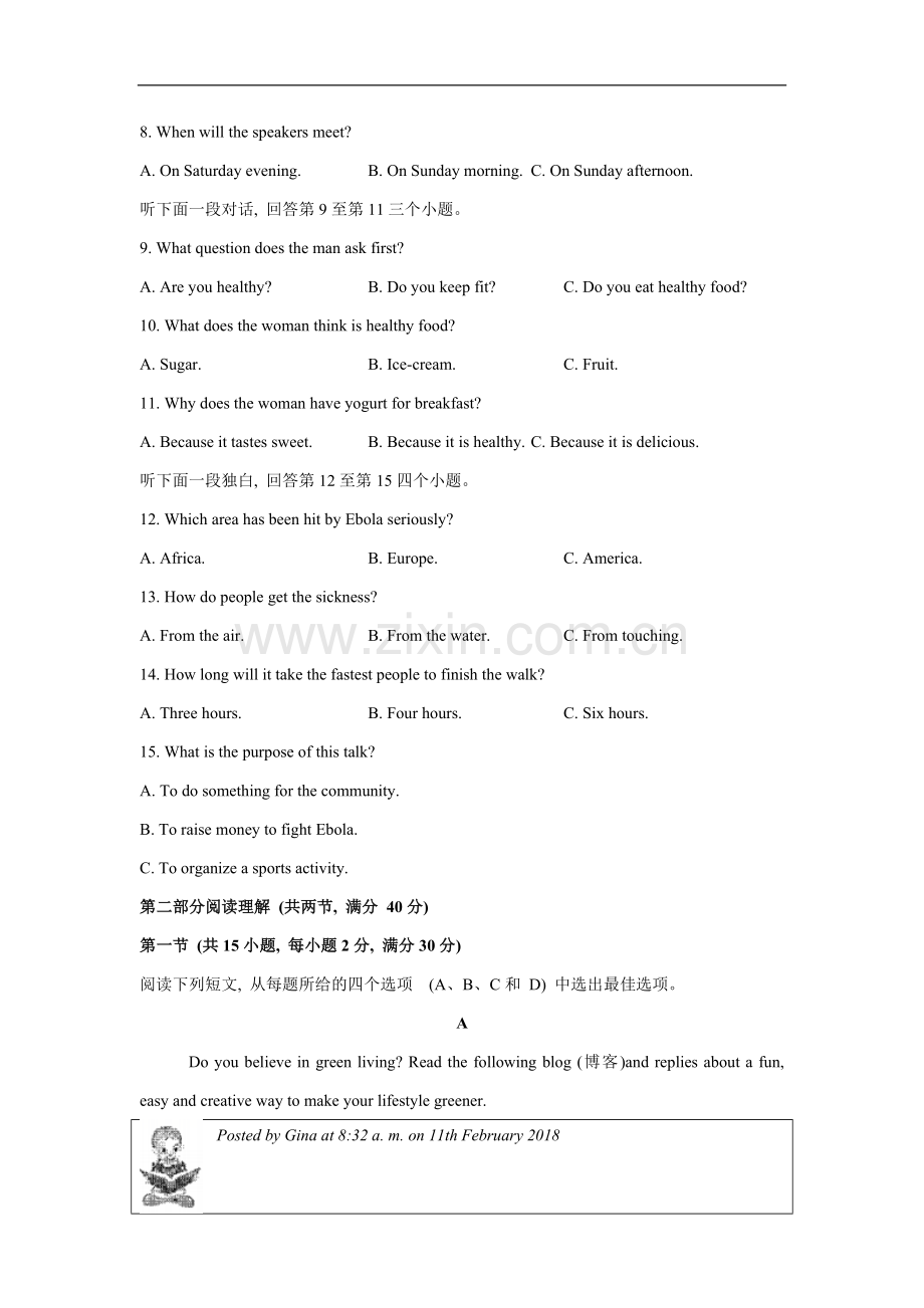 第一节 (共15小题, 每小题2分, 满分30分)