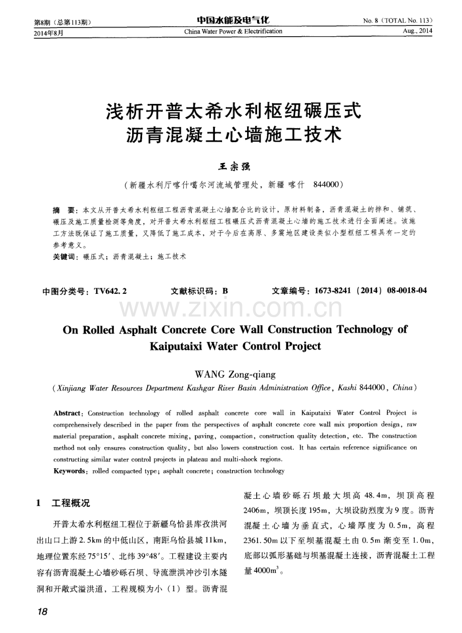 第8 期 ( 总第1 1 3 期) 中 国水 台 l i 及 电 气化 N O 8( T O T A l J N o 1 1 3 ) 2 O l 4 年8 月 C h i n a Wa t e r P o w e r &E l e c t r i fi c a t i o n 浅析开普太 希水 利枢 纽碾压式 沥青混凝土心墙施工技术 王 宗强 ( 新疆水利厅喀什噶尔河流域管理处,新疆 喀什8 4 4 0 0 0 ) 摘要:本文从开普太希水利枢纽工程沥青混凝土心墙配合比的设计,原材料制备,沥青混凝土的拌和、铺筑、 碾压及施工质量检测等角度,对开普太希水利枢纽工程碾压式沥青混凝土心墙的施工技术进行全面阐述。该施 工方法既保证了施工质量,又降低了施工成本,对于今后在高原、多震地 区建设类似小型枢纽工程具有一定的 参考 意义 。 关键词 :碾压 式;沥青混凝土 ;施工技术 中图分类号 :T V 6 4 2 2 文献标识码 :B 文章编号:1 6 7 3 - 8 2 4 1 ( 2 0 1 4)0 8 - 0 0 1 8 - 0 4 On Ro l l e d As p h a l t Co n c r e t e Co r e W a l l Co n s t r u c t i o n Te c h n o l o g y o f Ka i p u t a i x i Wa t e r C o n t r o l P r o j e c t W ANG Z o n g q i a n g ( X i n j i a n g W a t e r R e s o u r c e s D e p a r t m e n t K a s h g a r R i v e r B a s i n A d m i n i s t r a t i o n O f fic e , K a s h i 8 4 4 0 0 0, C h i n a ) A b s t r a c t :C o n s t r u c t i o n t e c h n o l o g y o f r o l l e d a s p h a l t c o n c r e t e c o r e w a l l i n K a i p u t a i x i Wa t e r C o n t r o l P r o j e c t i s c o mp r e h e n s i v e l y d e s c r i b e d i n t h e p a p e r f r o m t h e p e r s p e c t i v e s o f a s p h a l t c o n c r e t e c o r e w a l l mi x p r o p o r t i o n d e s i g n,r a w ma t e r i a l p r e p a r a t i o n,a s p ha l t c o n c r e t e mi x i n g,p a v i ng,c o mp a c t i o n,c o n s t r u c t i o n q ua l i t y d e t e c t i o n,e t c Th e c o n s t r u c t i o n me t h o d n o t o n l y e n s u r e s c o n s t r u c t i o n q u a l i t y ,b u t a l s o l o we r s c o n s t r u c t i o n C o s t I t h a s c e r t a i n r e f e r e n c e s i g n i f i c a n c e o n c o n s t r u c t i n g s i m i l a r w a t e r c o n t r o l p r o j e c t s i n p l a t e a u a n d m u l t i s h o c k r e g i o n s Ke y wo r d s : r o l l e d c o mp a c t e d t y p e ;a s p h a l t c o n c r e t e ;c o n s t ru c t i o n t e c h n o l o g y 1 工程概况 开普太希水利枢纽工程位于新疆乌恰县库孜洪河 出山口上游 2 5 k m的中低 山区 ,南距乌恰县城 1 1 k m, 地理位置东 经 7 5 。 1 5 、北纬 3 9 。 4 8 。工程建设 主要 内 容有沥青混凝土心墙砂砾石坝、导流泄洪冲沙引水隧 洞和开敞式溢洪道,工程规模为小( 1 )型。沥青混 7 8 凝 土 心 墙 砂 砾 石 坝 最 大 坝 高 4 8 4 m, 坝 顶 高 程 2 4 0 6 m,坝预长度 1 9 5 m,大坝设防烈 度为 9度 。沥青 混凝 土 心 墙 为 垂 直 式 ,心 墙 厚 度 为 0 5 r n ,高 程 2 3 6 1 5 0 m 以下 至 坝基 混 凝 土 由 0 5 m 渐 变 至 1 0 m, 底部 以弧形基础与坝基混凝 土连接 ,沥青混 凝土工程 量 4 0 0 0 m。 施 工技术 Co n s t r u c t i o n Te c hno l o gy 2 沥青混凝土配合比设计 该工程沥青混凝土配合 比委托某 大学水工沥青 防 渗研究所 设计 。首先选定 了级配指数 ,然 后通过不 同 填料含量、油石比以及天然砂含量组合成不同编号的 配合 比。从 中选择出最 优的两种沥青混凝土配合 比进 行进一步试验 ,通过劈 裂试 验确 定 6号和 2 6号配 合 比作为推荐配合 比。详 见表 1 、表 2 。 表 1 推 荐 沥 青 混 凝 土 配 合 比 的 材 料 和 级 配 参 数 级 配 参 数 材 料 品 种 配 比 最 大骨料粒径 填料含量 油石 比 ( 沥青 编号 级 配指数 沥青 粗骨料岩性 细骨料岩性 填料 ( m m) ( ) 占矿料重 ) ( ) 6 1 9 0 4 0 1 4 7 O 库车 A H - 9 0 1 0 0 人工砂 灰岩 灰岩填料 2 6 l 9 0 4 0 1 4 7 0 库车 A H- 9 0 5 0 天然砂 ,5 0 人工砂 表2 推 荐 沥 青 混 凝 土 配 合 比 的 矿 料 级 配 配比 筛孑 L 尺 寸 粗骨料( 1 92 3 6 ) 细骨料 ( 2 3 6 0 0 7 5 ) 0 0 7 5 编号 ( fl l n 1 ) 1 9 1 6 1 3 2 9 5 4 7 5 2 3 6 1 1 8 0 6 O 3 0 1 5 6 通过率 ( ) 1 0 0 0 9 3 6 8 6 9 7 6 6 5 8 9 4 5 4 3 8 0 3 0 2 2 3 7 2 1 1 1 4 2 6 通过率 ( ) 1 0 0 O 9 3 6 8 6 9 7 6 6 5 8 9 4 5 4 3 9 0 3 1 1 2 2 6 l 9 1 1 4 通过施工现场检测 ,天然砂 的含 泥量超标 ,且 掺 加天然砂并无明显的经济效益,同时在碱骨料加工过 程中,生产的人工砂满足施工用量要求。根据实际情 况确定施工时采用 6 号配合比,见表 3 。 表 3 沥青混凝土施工配合比 粗骨料 粗骨料 细骨料 原材料名称 、规格 矿粉 沥青 ( A H - 9 0 ) ( 1 9 9 5 mm) ( 9 5 2 3 6 mm) ( 2 3 6 0 0 7 5 m m) 每 1 0 0 0 k g矿料的各 种材料 用量 ( k g ) 2 4 0 3 7 0 2 0 0 1 9 O 7 0 3 沥青混凝土原材 料制备 该工程碱性骨料场距施工现场 2 5 k in,经过爆破 后选择新鲜坚硬的碱性岩石运至施工现场进行加工、 筛 分 ,从 而获得理想级配料 。采用 A H 一 9 0道路 石油沥 青 ,填充料在水泥厂采购 。不 同级配 的骨料在拌 和现 场 分仓堆放 ,并用防雨布进行覆盖 ,防止雨淋及尘 土 污染。 4 沥青混凝土混合料拌和 试 验结果 ,计算 确定 沥青混凝 土的原材料用量 ,并 签 发沥青混凝土配料单。根据签发的配料单按 重量配合 比进行 配料 ,因为工程量较小 ,拌和 现场采 用人工 配 料,每盘进行称量,并有专人进行记录。沥青用量每 盘 固定 ,在计量 桶标 准位置设 置沥青 溢流孔 ,操作 简 便 易行 ,并保证 了计 量的准确性 。 4 2 沥青混凝土原材料的温度控制 拌和前对热储存罐 中的沥青 、干燥 筒进 口处 的骨 料、热料仓中的骨料及拌和出口处的沥青混凝土混合 4 1 沥青混凝土混合料的配料 料进行温度测量。沥青加热温度控制在 1 6 0 1 7 0 
