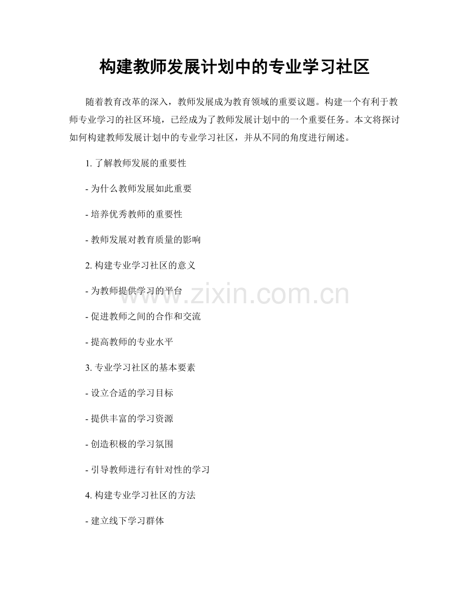 通过构建教师发展计划中的专业学习社区,可以为教师提供一个良好的学习平台和学习环境。有效的教师发展计划能够促进教师专业素养的提高,提升教育质量,为学生的发展创造更好的条件和机会。希望本文能够为教育界的决策者和教师提供一些有益的思考和启示。