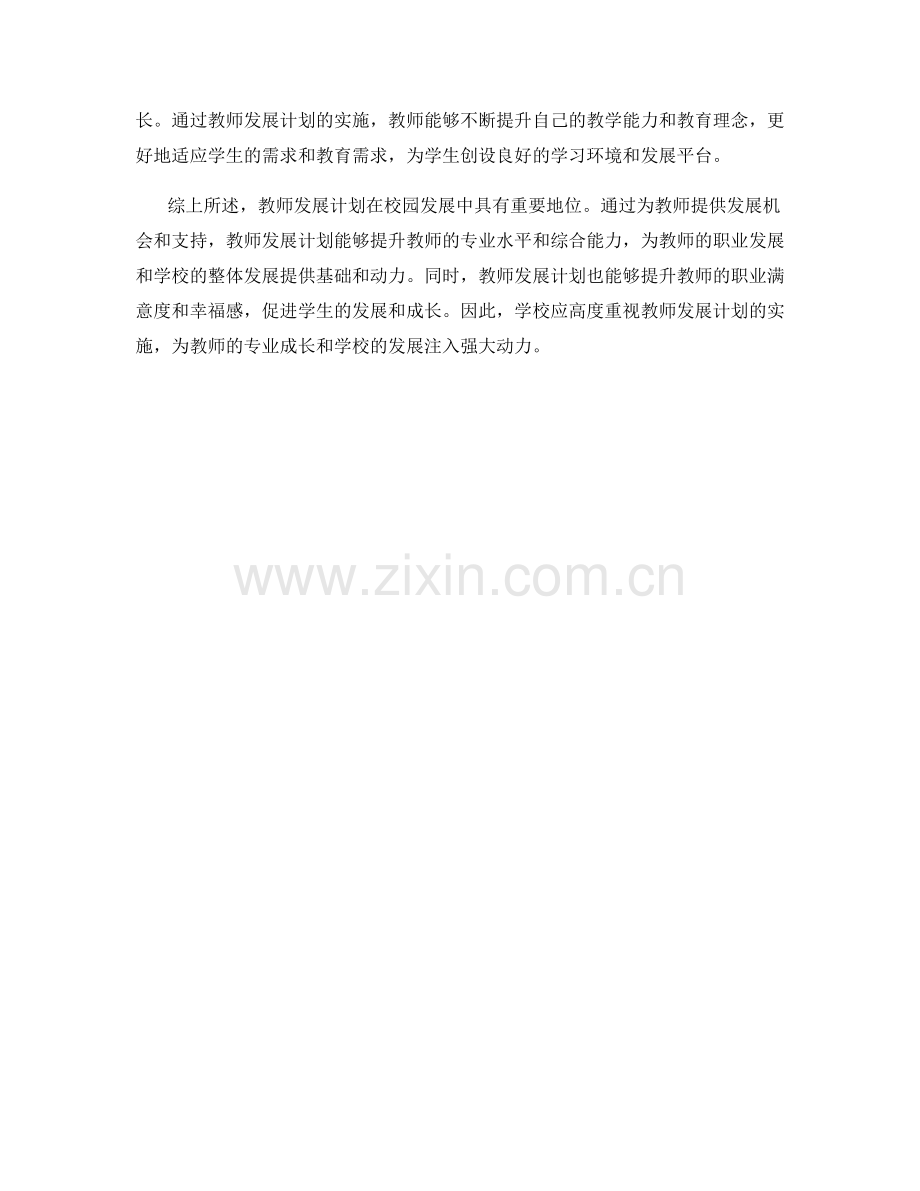 综上所述,教师发展计划在校园发展中具有重要地位。通过为教师提供发展机会和支持,教师发展计划能够提升教师的专业水平和综合能力,为教师的职业发展和学校的整体发展提供基础和动力。同时,教师发展计划也能够提升教师的职业满意度和幸福感,促进学生的发展和成长。因此,学校应高度重视教师发展计划的实施,为教师的专业成长和学校的发展注入强大动力。