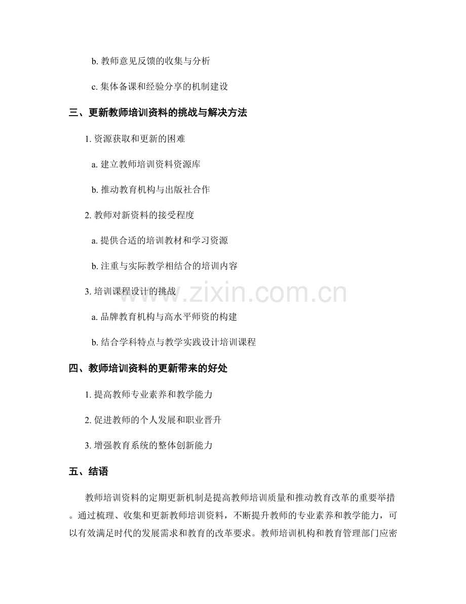 教师培训资料的定期更新机制是提高教师培训质量和推动教育改革的重要举措。通过梳理、收集和更新教师培训资料,不断提升教师的专业素养和教学能力,可以有效满足时代的发展需求和教育的改革要求。教师培训机构和教育管理部门应密切关注教育领域的最新动态,积极推动教师培训资料的更新,为教师的专业发展和学生的学习提供有力支持。