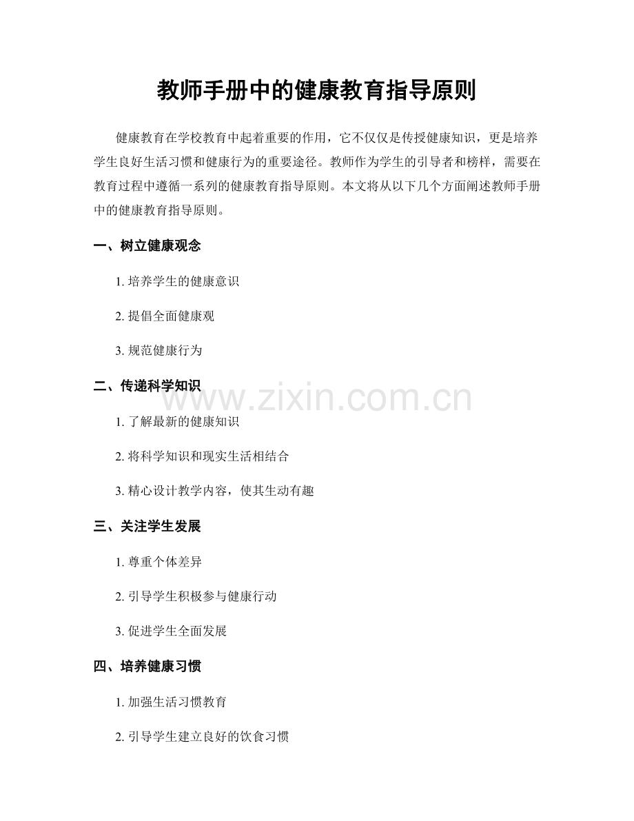 教师手册中的健康教育指导原则