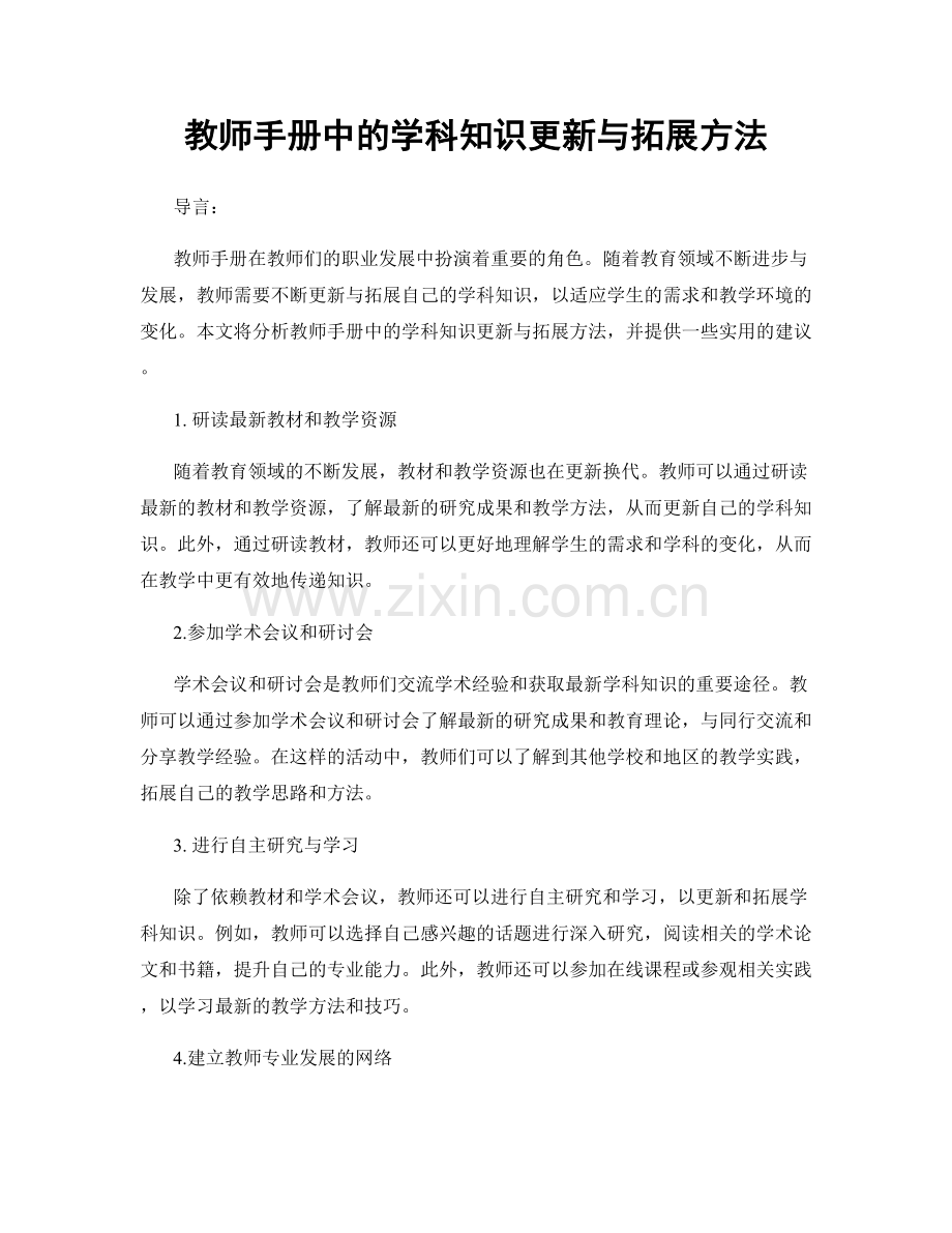 教师手册在教师们的职业发展中扮演着重要的角色。随着教育领域不断进步与发展,教师需要不断更新与拓展自己的学科知识,以适应学生的需求和教学环境的变化。本文将分析教师手册中的学科知识更新与拓展方法,并提供一些实用的建议。