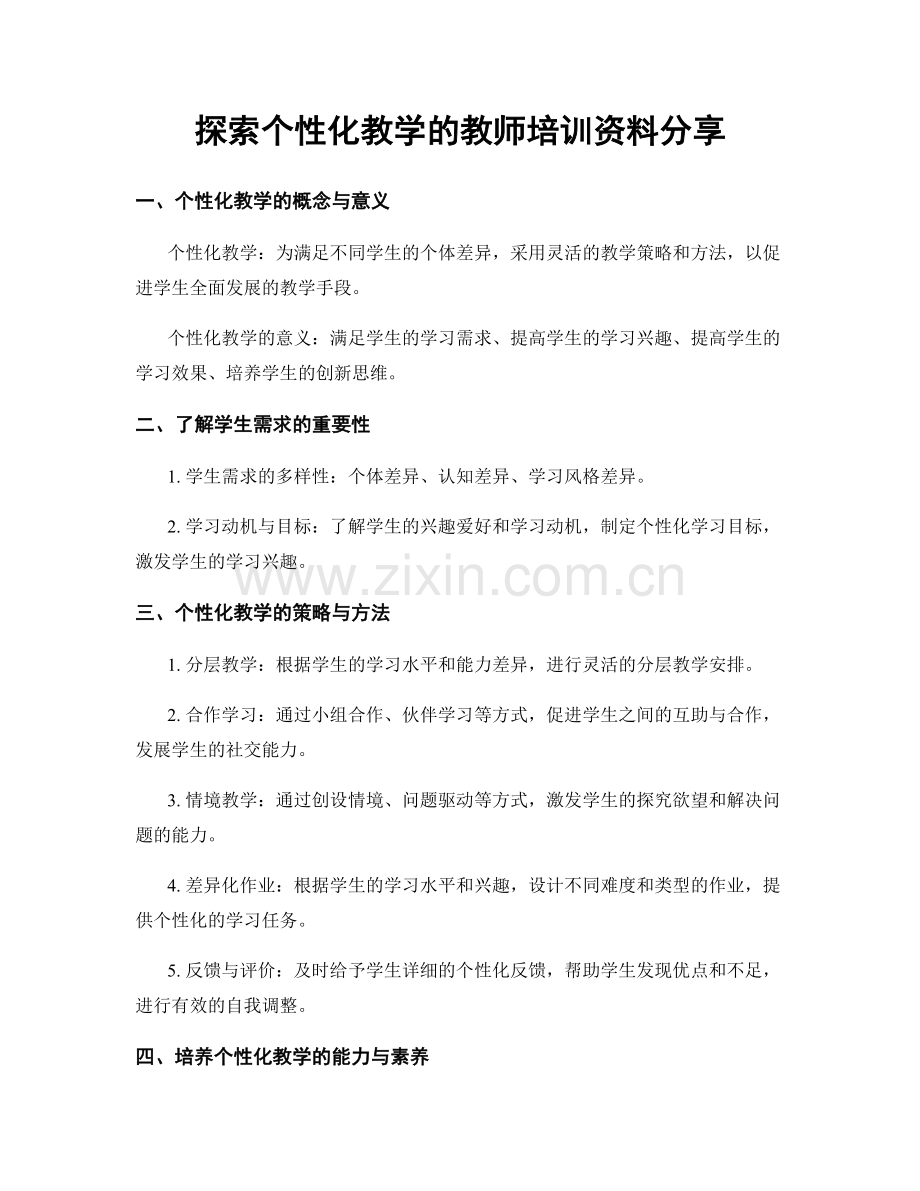 探索个性化教学的教师培训资料分享