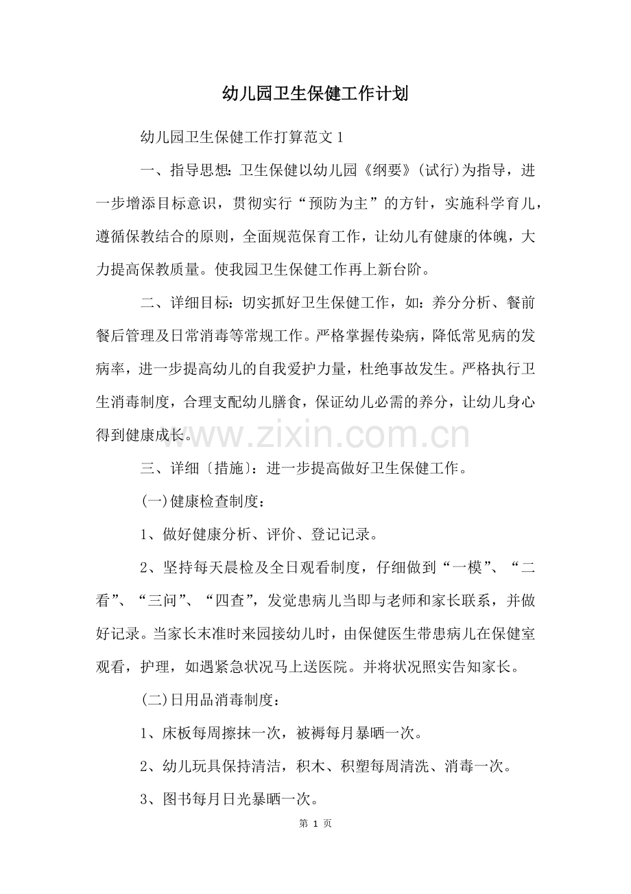 以《幼儿园工作规程》精神为指导,仔细执行《托儿所幼儿园卫生保健工作常规》。结合幼儿园实际状况,制定合理的幼儿园卫生保健工作打算,把幼儿园平安、卫生、保健工作放在主要位置,确保每个孩子在幼儿园健康欢乐成长。